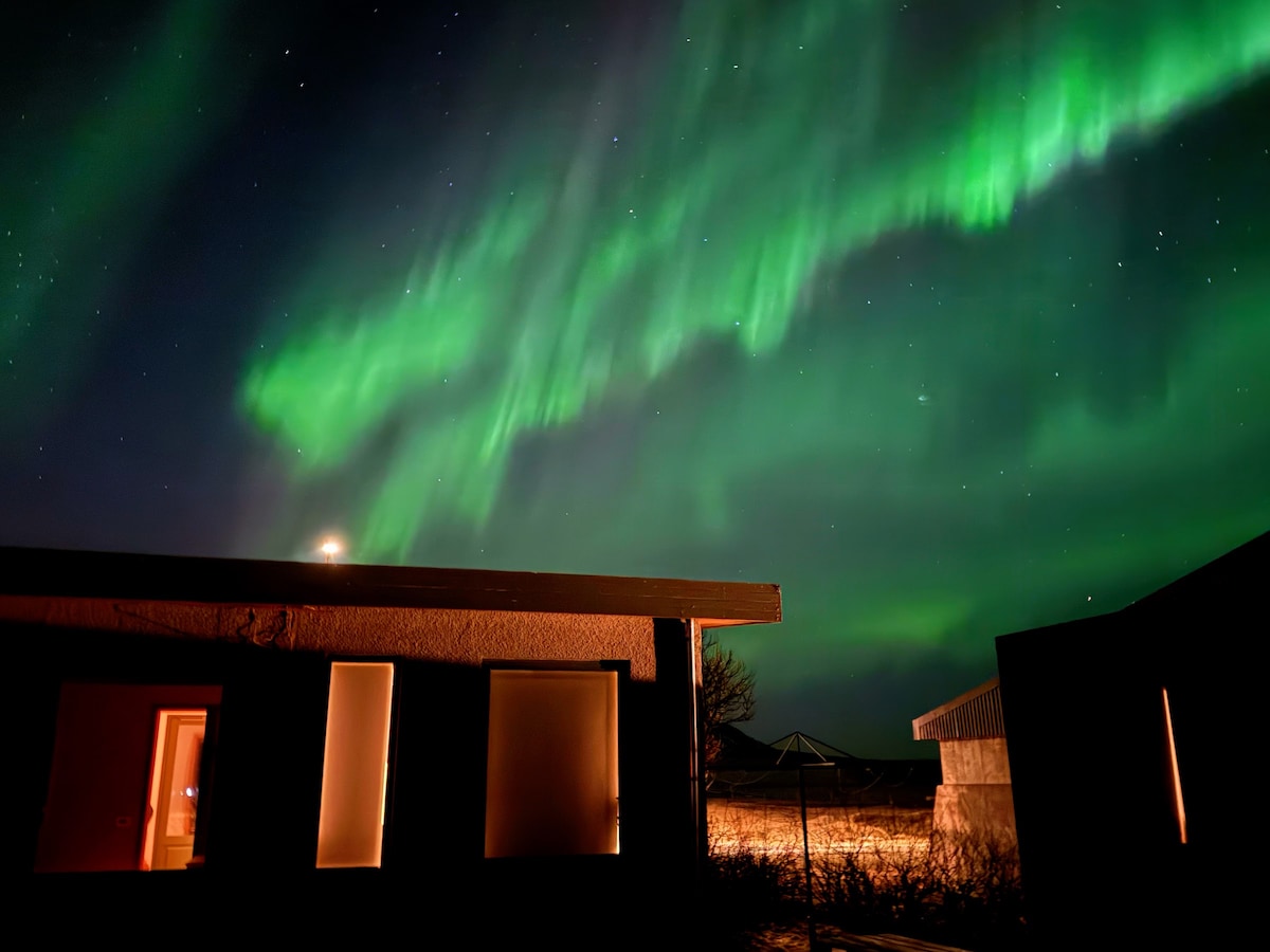 Udobna, minimalistička mini vila od 36 m2 za najviše 2 osobe (uključujući djecu od 0 do 13 godina), udaljena samo 2 km od Fjaðrárgljúfura. Mini vila ima prekrasan pogled na planine i mahovinu lava polja. Ima spavaću sobu, moderno kupatilo s tušem i potpuno opremljenu kuhinju s pećnicom/mikrotalasnom pećnicom, mašinom za pranje sudova i frižiderom. Uživajte u jutarnjoj kafi iz aparata Nespresso Citiz dok se opuštate u mirnom islandskom pejzažu.