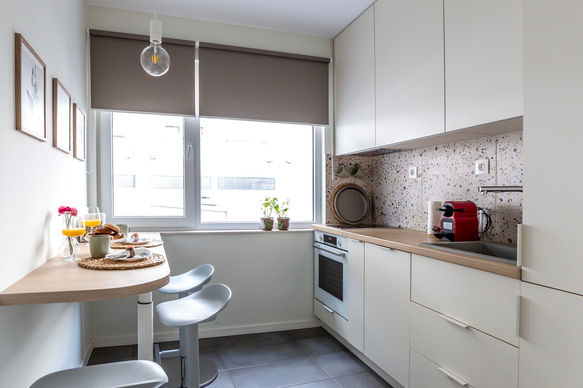Stylish and bright apartment in central Varna within walking distance of the Sea Garden and beach. Perfect for couples, business trips and remote work. Features fast reliable Wi-Fi, dedicated workspace, fully equipped kitchen, air conditioning and sunny balcony. Easy self check-in for flexible arrival. Suitable for short and long stays The apartment is in a convenient central area close to everything you may need • 5–10 min to Sea Garden • 5–10 min to city centre • easy public transport access
