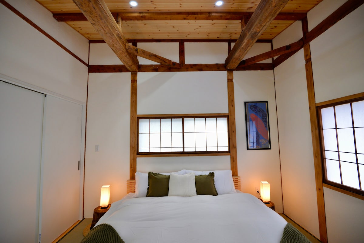 Ovo je cijeli objekat za iznajmljivanje s potpuno privatnim prostorom ograničenim na jednu grupu dnevno.Prostran je i ima drvenu terasu s verande. Japanski vrt je dobro održavan, tako da se možete opustiti s pogledom na vrt u kojem možete plivati. Možete doživjeti „opuštajuću noć na selu”. Objekat je opremljen roštiljem i ručnim vatrometom. Set za roštilj (šporet, ugalj, mreža, upaljač, hvataljke): 3000 jena Ognjište (5 kg drva za ogrjev): 3.000 jena Ako želite iznajmiti smještaj, šaljemo vam poruku. Naručite do dana prije dolaska putem linka za dolazak. Ako imate bilo kakve alergije, imajte na umu da su dozvoljeni i kućni ljubimci osim životinje za pomoć čoveku. Ako putujete s kućnim ljubimcem, morate ga prijaviti.