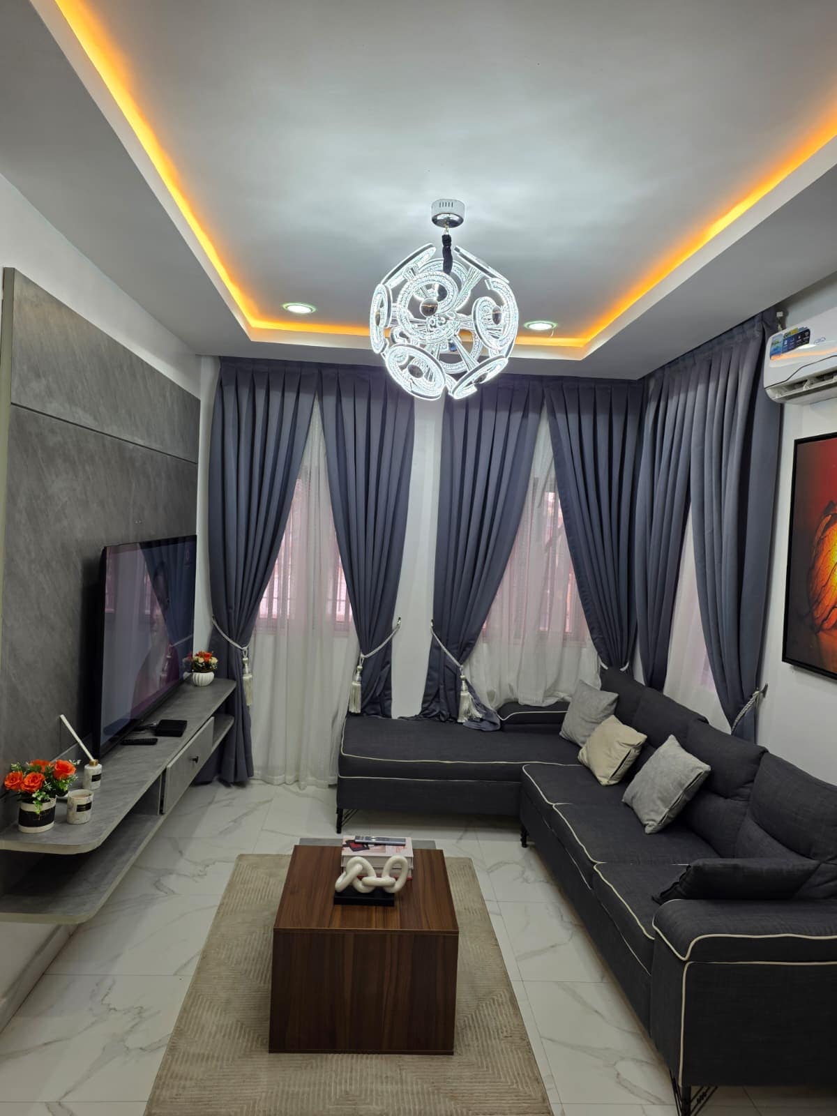 Doživite luksuz u ovom elegantnom trosobnom stanu sa spojenim kupatilima i elegantnim enterijerom. Samo 5 minuta od aerodroma Lagos i 3 minute od tržnog centra Ikeja City. Uživajte u brzom Wi-Fi mreži, pametnom TV-u, klima-uređaju, potpuno opremljenoj kuhinji, veš mašini/sušilici i napajanju 0-24 na ograđenom imanju s uniformisanom sigurnošću. Idealno za porodice, grupe ili poslovne putnike. Samostalni dolazak i profesionalno upravljanje za besprijekoran boravak.