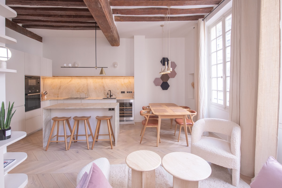 The "Sleeping Lion" is a studio nestled in the heart of the Marais district, in a 17th-century building in historic Paris. Carefully furnished and decorated in a boutique hotel style, it combines modern comfort with a soothing atmosphere to recharge your batteries after a day of exploring, shopping, or business meetings. Thanks to its prime location, it allows you to savor the authenticity and energy of a must-see neighborhood, while remaining close to the capital's iconic sites.