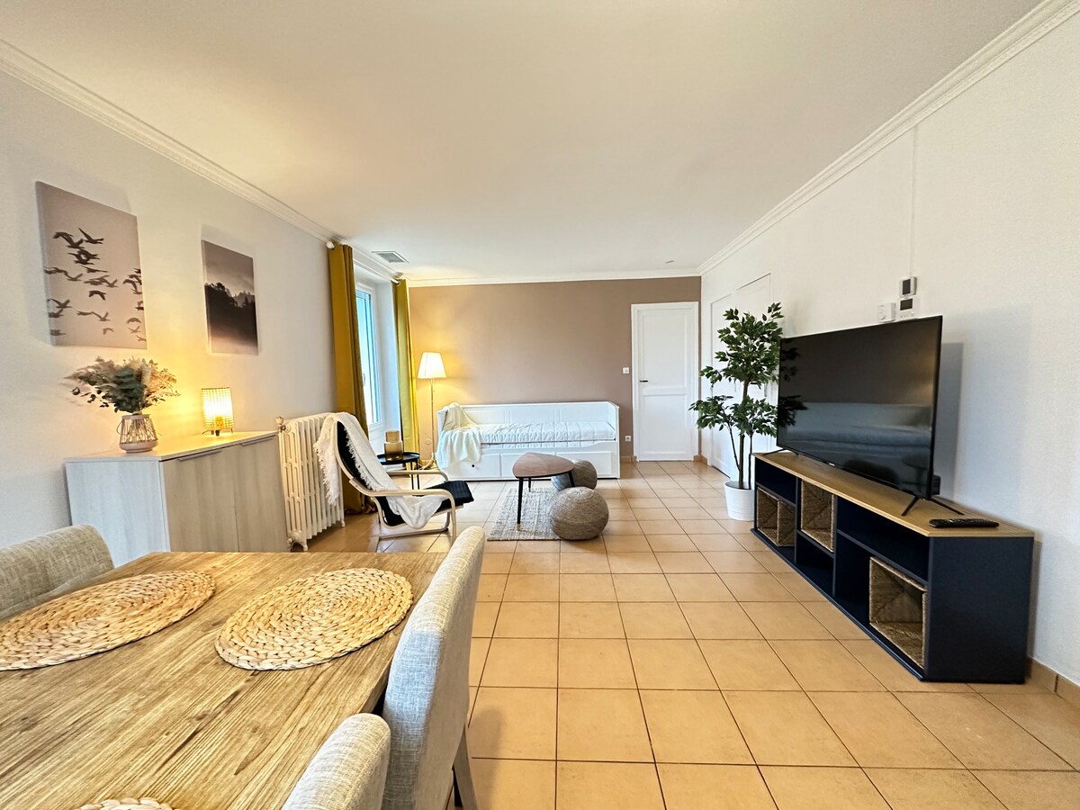 Lijep dupleks od 27 m2, potpuno renoviran, miješajući moderno i staro. Ima koristi od sobe s dnevnom sobom, trpezarijom i opremljenom kuhinjom, kupatilom s tuš kabinom, spavaćom sobom na katu i terasom (možda ćete upoznati Suzie, našeg neodoljivog psa). Ovdje ćete pronaći stare parketne podove i pločice iz perioda. Stan se nalazi pored naše kuće. Nalazi se u centru grada u okrugu Colbert, 2 minute hoda od hiper centra. Besplatan parking na 1 minutu hoda.