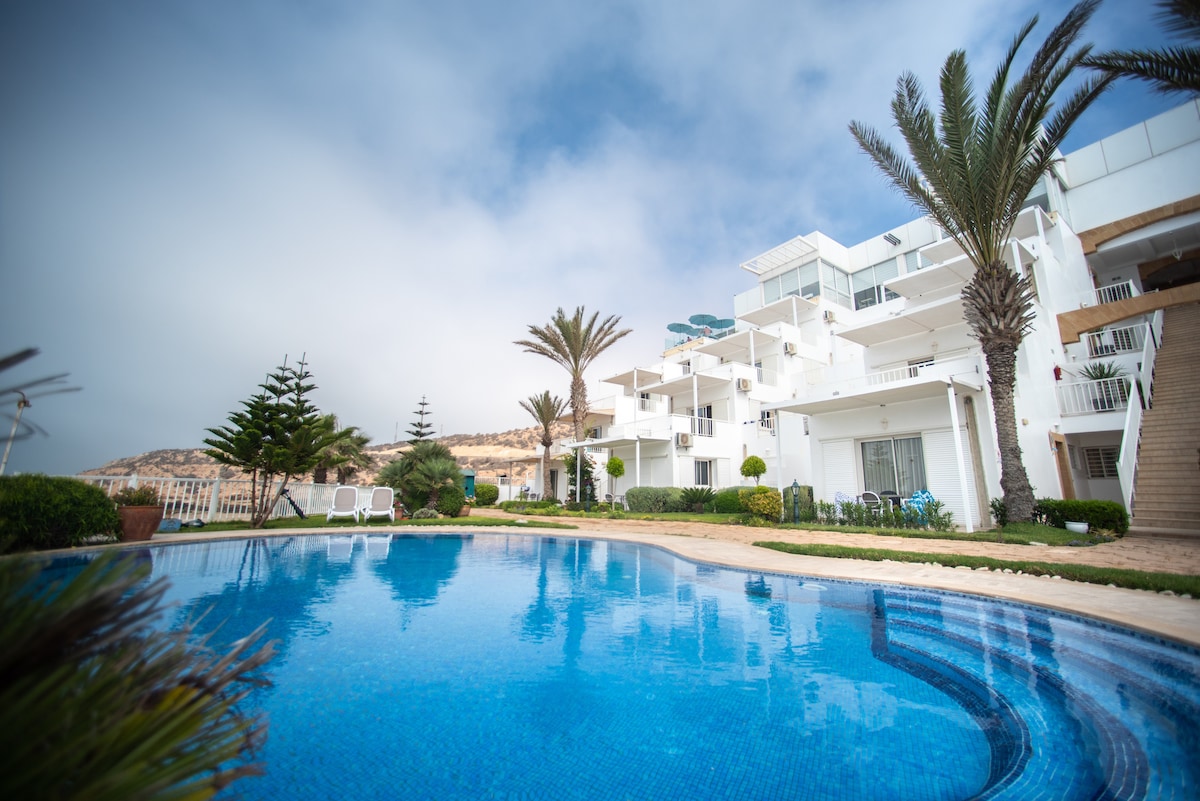 Zaista udoban stan, u blizini terena za golf, ali i najbolje mjesto za surfanje marokanaca, pruža vam moderan i čist smještaj u blizini korijena marokanske prijestolnice surfanja. I mjesta za surfanje i golf udaljeni su 5 minuta vožnje od smještaja. Na raspolaganju su privatni bazen i fudbalski teren. WI-FI//APPLE TV je dostupan Zaštitari su 24 sata dnevno. Luksuzni hoteli kao što su Fairmont, Hyatt, Tikida udaljeni su nekoliko minuta hoda, gdje možete uživati u nevjerovatnim koktelima gledajući zalazak sunca.