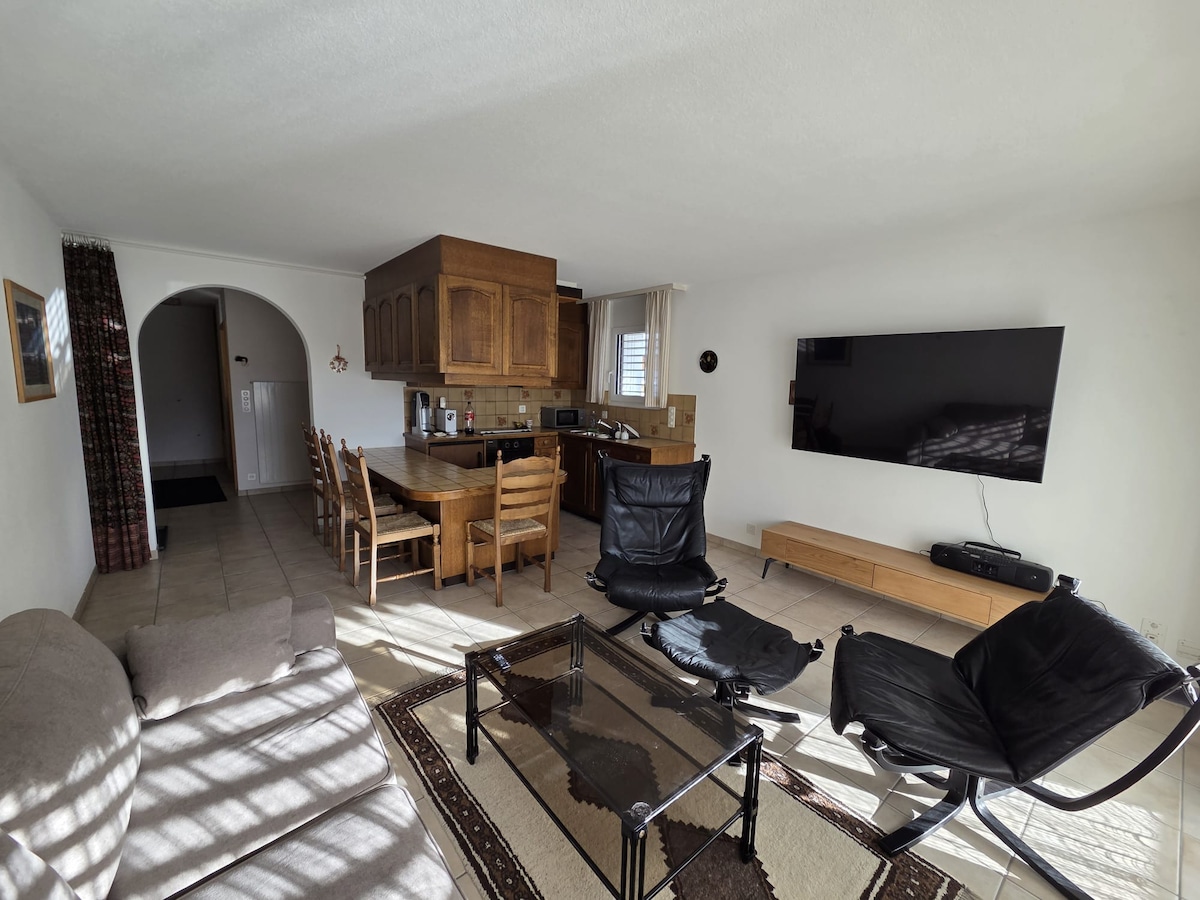 Opustite se s cijelom porodicom u ovom mirnom smještaju. Stan u planinskoj kući s 2 spavaće sobe pruža se nevjerovatan pogled na Alpe. Udaljen je samo 10 minuta vožnje od centra Crans-Montane, koji nudi aktivnosti tokom cijele godine. Barzettes ski lift je udaljen 8 minuta vožnje. Višestruke šetnje počinju samo 5 minuta hoda od stana. Stan se sastoji od 2 spavaće sobe, dnevne sobe s otvorenom kuhinjom. Ima sve sadržaje za opušten vikend ili duži porodični odmor zimi ili ljeti.