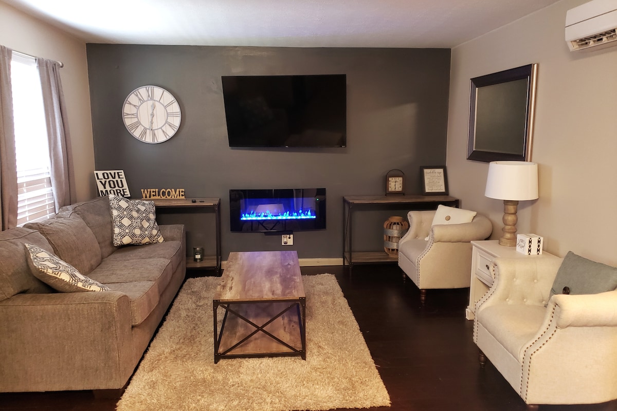 Uživajte u boravku u Lil Blueu! Imat ćete cijelu kuću s 2 spavaće sobe i 1 kupatilom koja je udobna, udobna i potpuno namještena. Nalazimo se pola bloka dalje od The Carriage House u muzeju Howard Steamboat Museum i samo kilometar i po od svega što centar Jeffersonvillea nudi. Udaljeni smo most od Louisvillea, manje od 10 milja od Churchill Downsa (Kentucky Derby) i manje od 5 kilometara od YUM Centra (odlični koncerti, događaji i UofL košarka). Sve u ovom smještaju je POTPUNO NOVO!