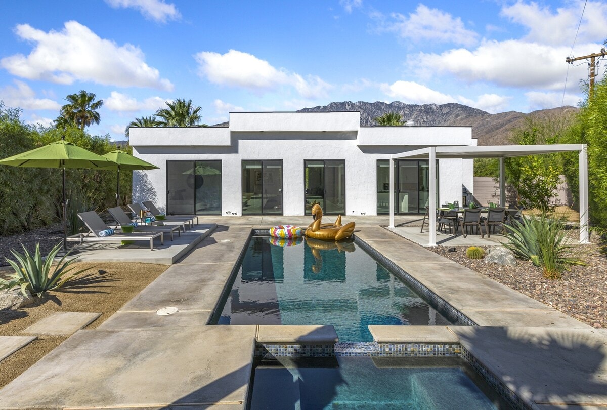 „CASA OCOTILLO” LUKSUZNO, MODERNO UTOČIŠTE U PUSTINJI S BAZENOM S MORSKOM VODOM + SPA CENTROM I NEOMETENIM POGLEDOM NA PLANINE. Moderan smještaj koji se nalazi visoko iznad uvale La Quinta. Objekat je lijepo uređen na nevjerovatnom nivou, sa zadivljujućom pažnjom posvećenom svakom detalju. Uđite u privatno, ograđeno dvorište i opustite se pored grijanog bazena s morskom vodom dok uživate u izvanrednom pogledu na planine Santa Rosa. Ovo je odmor u pustinji koji će sigurno dugo živjeti u sjećanju.