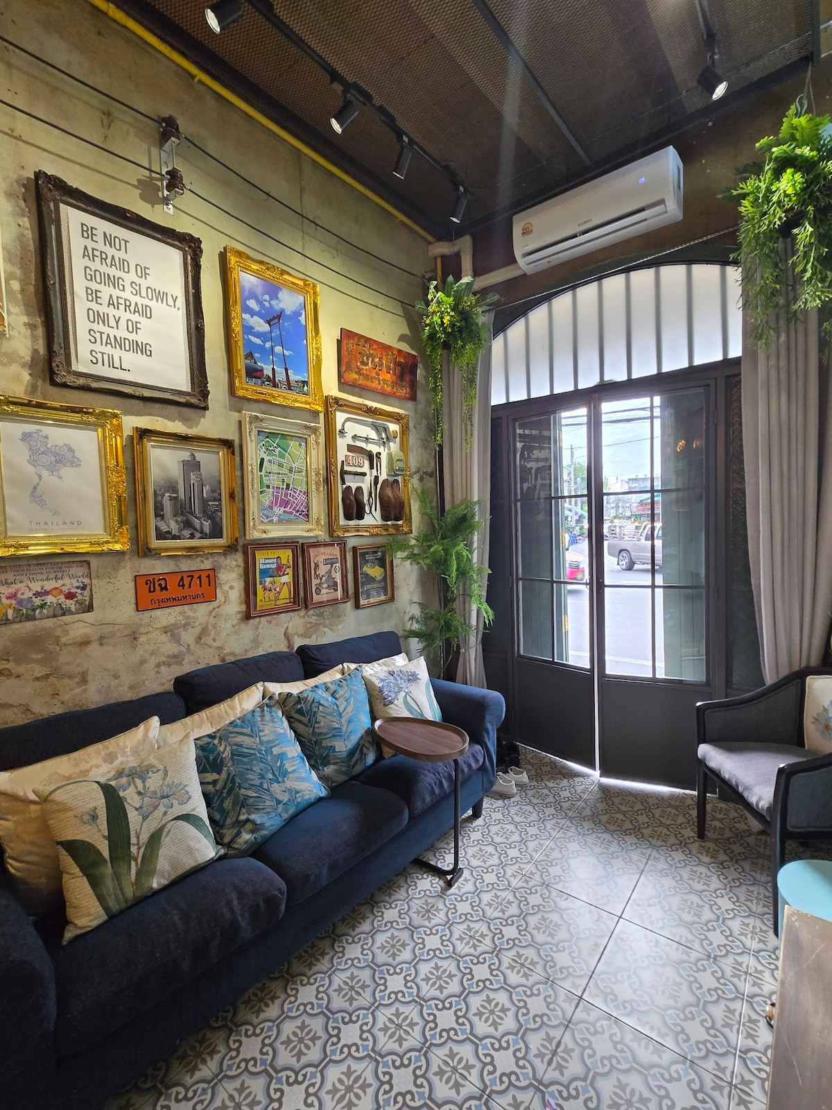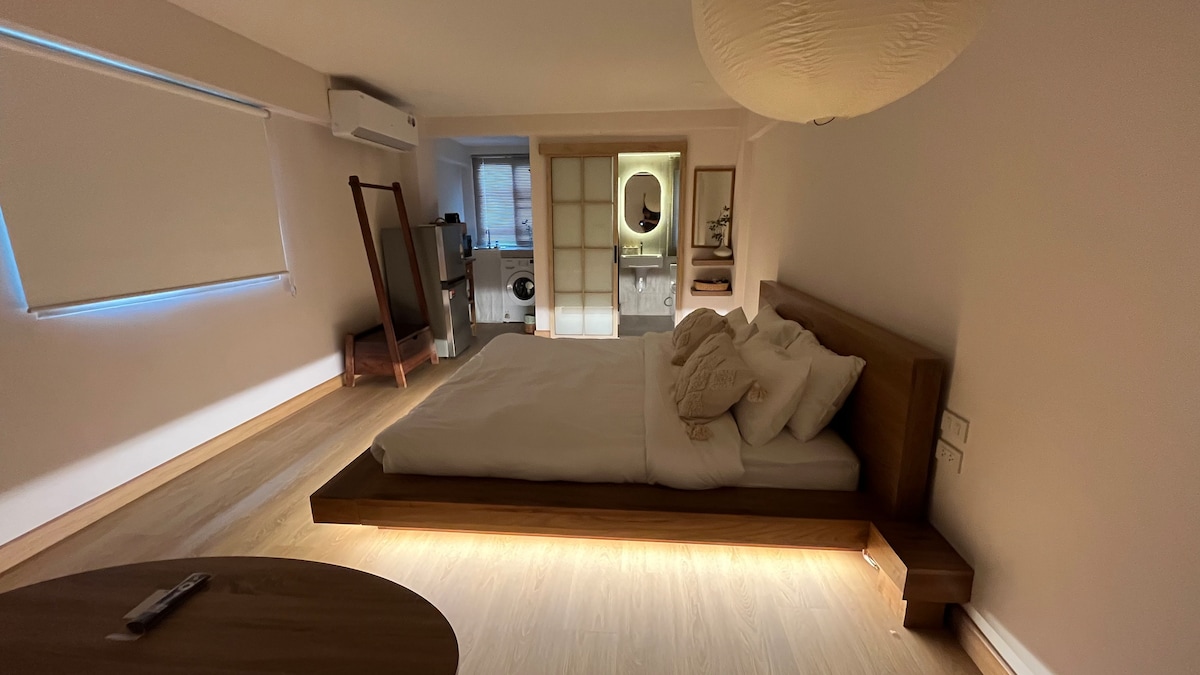 Dobro došli u elegantan studio uz rijeku u historijskom Starom gradu Bangkoka. Uživajte u rijetkim pogledima na krivulju rijeke Chao Phraya i živopisne prolazeće brodove. Nekoliko koraka od popularne ulice Songwat Road, živopisne četvrti s kafićima, barovima i kreativnim trgovinama. Unutra, starinski šarm susreće modernu udobnost s punom kuhinjom, udobnim krevetom i radnim stolom, savršenim za duže boravke, digitalne nomade ili kao bazu za odmor za istraživanje Bangkoka.