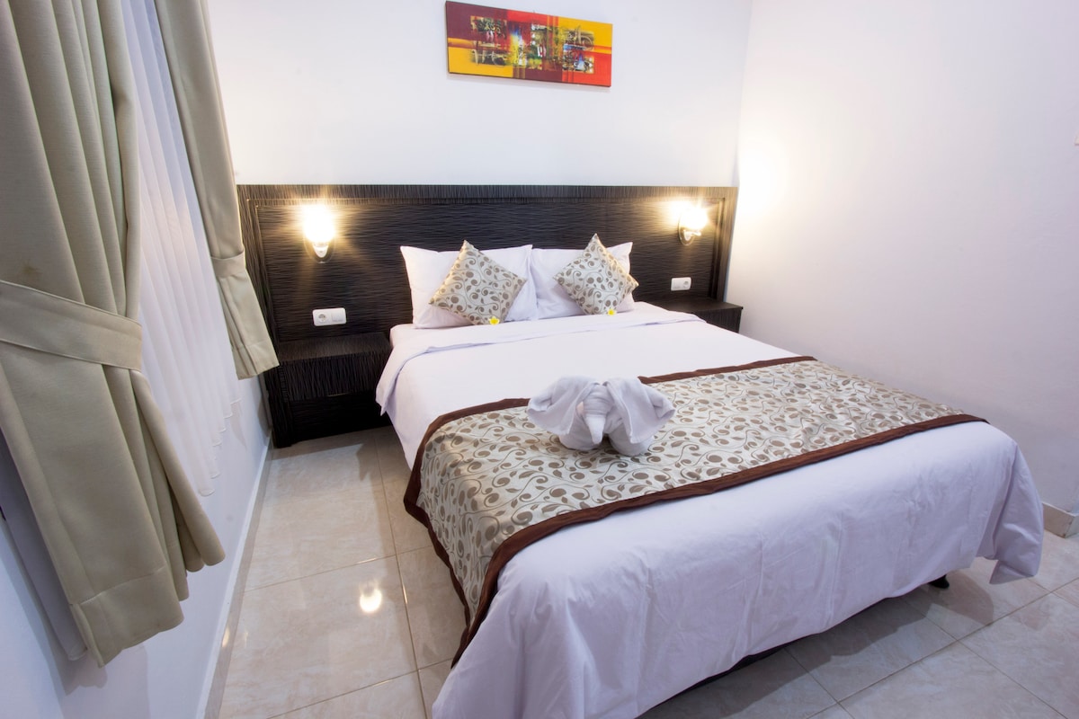 Prostrana i udobna omiljena soba. Strateška lokacija u centru grada, 15 minuta hoda od aerodroma Ngurah Rai, u blizini plaža, lokalne i zapadne kuhinje, tržnog centra Lippo Mall, Discovery Mall, bankomata banke, crkve, Waterboom, umjetničke pijace itd. Imajte na umu da je dolazak samo do 23:00. Od februara 2025. prihvatamo samo goste koji mogu doći prije 23:00. Hvala
