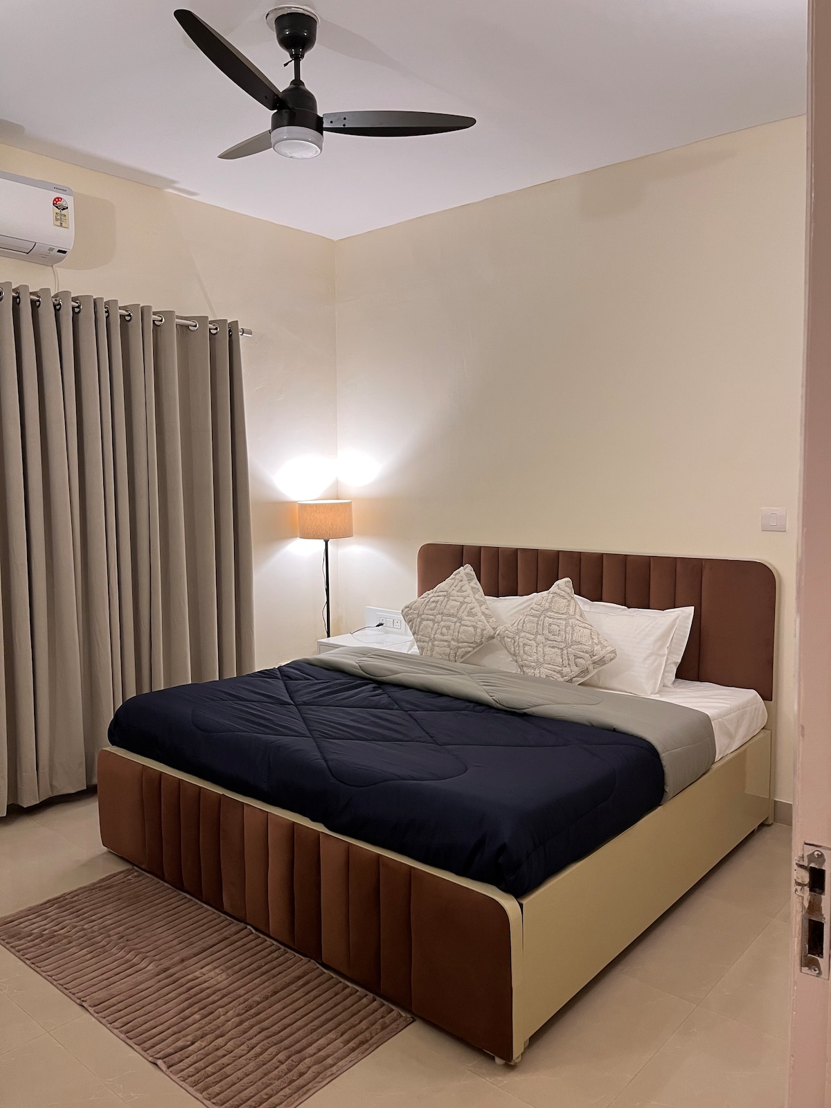 Udoban, minimalistički dvosobni stan u ograđenom naselju s vlastitom tržnicom i trgovinom pićem u blizini. Jedna soba ima spojeno kupatilo. Uživajte u Wi-Fi mreži, TV-u, klima uređaju, sušilu za kosu i potpuno opremljenoj kuhinji. Zomato i Blinkit dostavljaju pravo do vrata. Jednostavan samostalni dolazak uz sigurnosni PIN. Udoban, miran prostor savršen za posao ili opuštajući odmor. 🌿💛