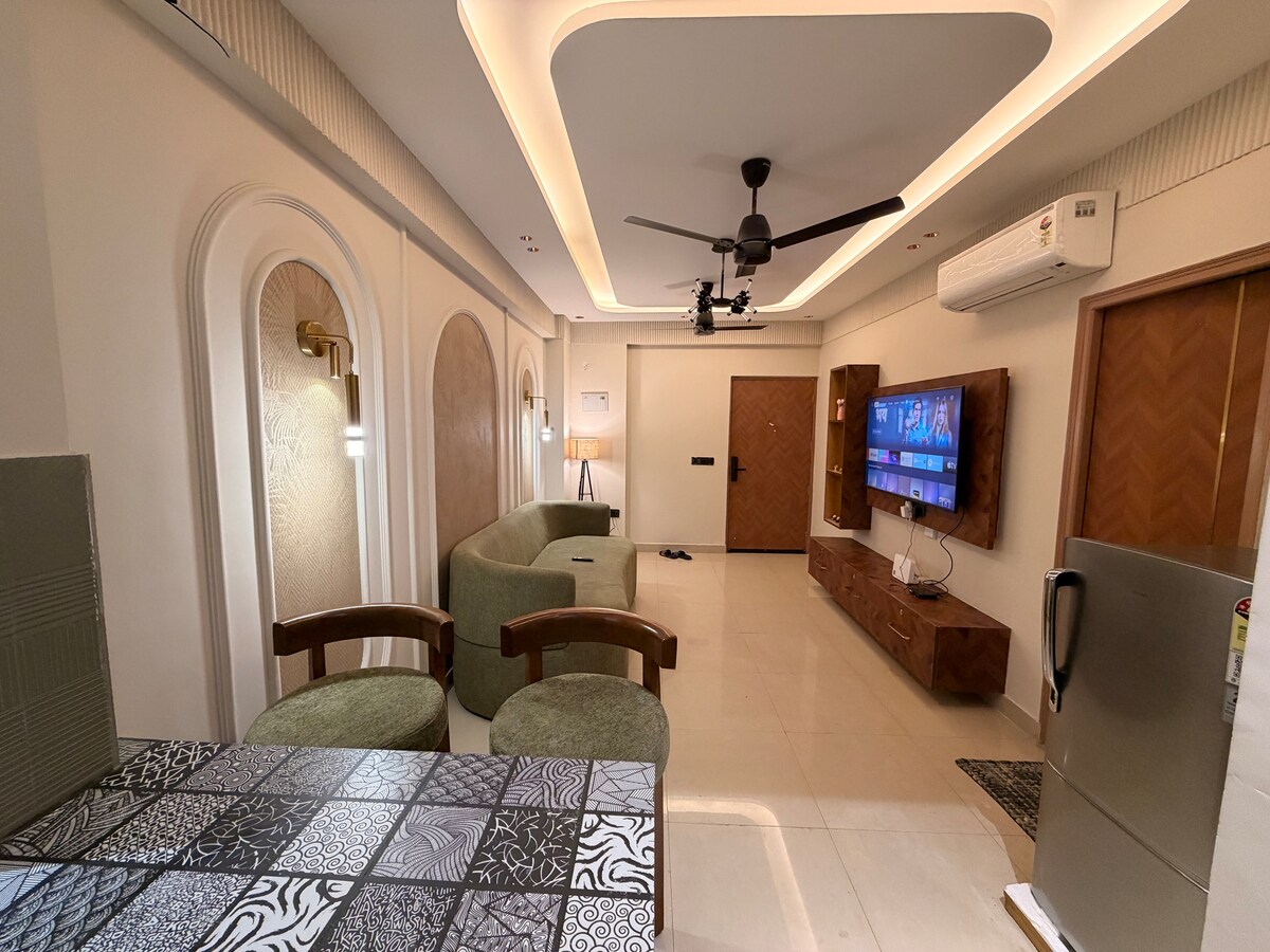 Dobro došli u The Midnight 🌙 Novopostavljeni 1 BHK na 2. spratu Smart Homes, Sektor 32A, savršen za parove i male porodice. Spavaća soba ima spojenu kupaonicu i privatni balkon. Opustite se u udobnom dnevnom boravku s kaučem, TV-om i trpezarijom ili se opustite na ljupkoj ljuljački u predvorju, savršenoj za čaj i opuštanje ✨ Kuhinja je opremljena frižiderom i pročišćivačem vode, zajedno sa sadržajima kao što su bojler, pristup liftu i vodosnabdijevanje 0–24 za udoban boravak.