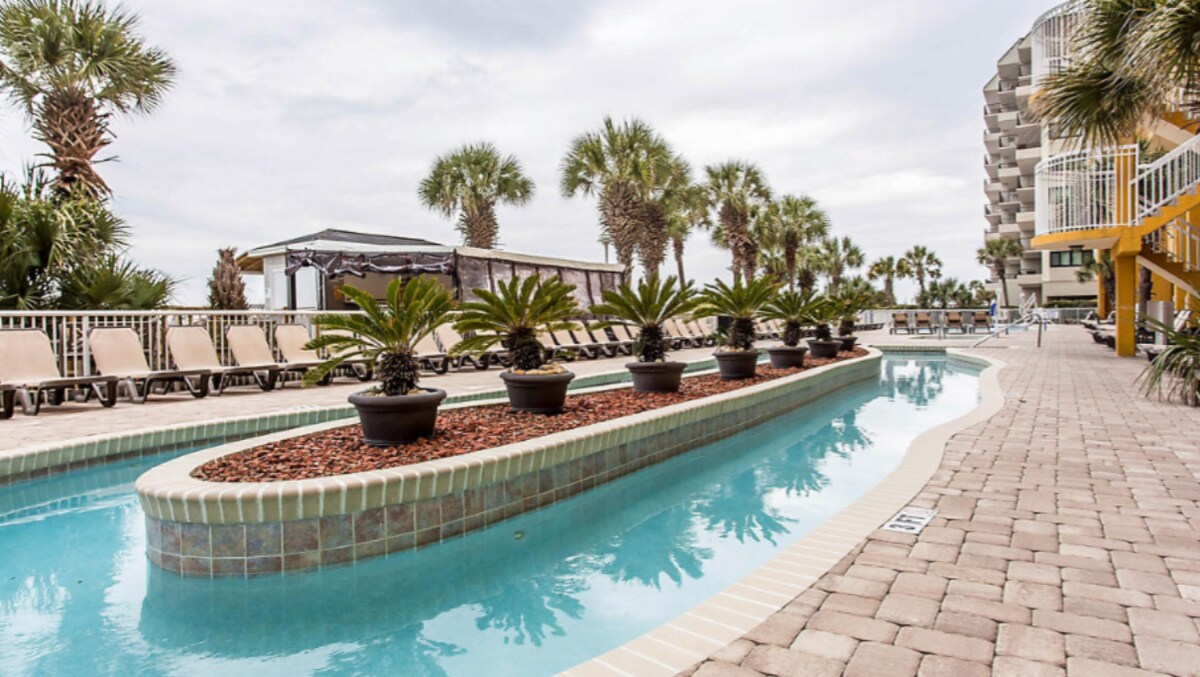 Svidjet će vam se ovaj elegantni kondominij opremljen frižiderom pune veličine, pločom za kuhanje i još mnogo toga! Uživajte u neometanom pogledu na okean s balkona ili slušajte valove mora iznutra dok uživate u svim sadržajima koje ova jedinica i odmaralište imaju za ponuditi. Savršen porodični odmor ili romantični odmor u kojem možete uživati s onima koje volite. Sadržaji u sklopu objekta uključuju kompletnu kombinaciju 18 bazena/lijenih rijeka/masažnih kada, stolova za bilijar, arkadnih igara, fitness centra, restorana, bara pored bazena i prodavnice sladoleda!