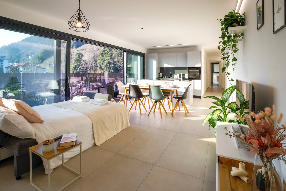 Šarmantan, prostran studio sa stilom u romantičnoj kući Ticino u Brissago-Rossorinu, 3 km od italijanske granice. Nepobjedivi pogledi, južni ambijent i apsolutni mir! Savršeno za odmor, utočište s dobrom energijom, gdje možete uživati u Dolce Far 'nienteu ili raditi na inspirisan način. Idealno polazište za planinarenje.
