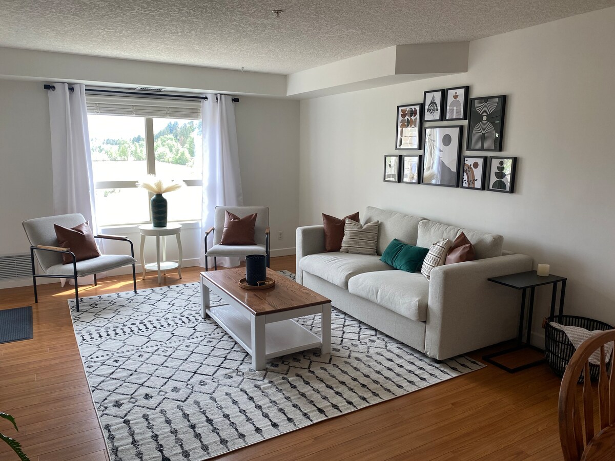 Embody the serenity of calm waters, clear skies & stoic mountain ranges at this fully equipped, central condo. Enjoy your morning cup of tea or coffee on the private patio, with views of the Rocky Mountains. Situated in the sought-after Lake Windermere Pointe community, your stay includes access to their gym, hot tub & seasonal outdoor pool. Only steps away from James Chabot Beach, you can be in the sand or skating the Whiteway in minutes. Enjoy peace & convenience here at the Sapphire Serenity.
