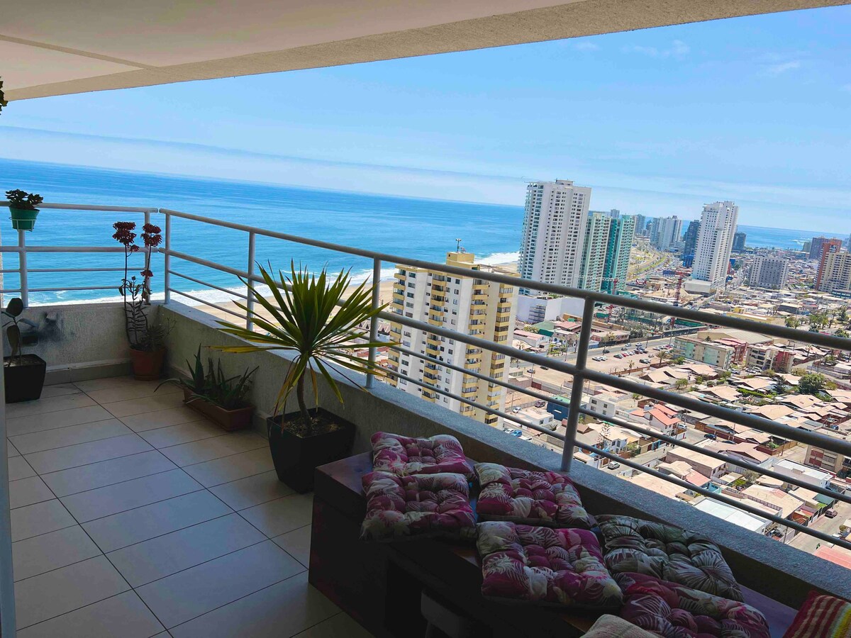 Uživajte u nevjerovatnom doživljaju u našem stanu koji se nalazi na 23. spratu ispred mora, s nevjerovatnim pogledom i u blizini ključnih tačaka grada (Supermercados-Commercial-Center- Bencineras-Restaurants) Stan je u potpunosti opremljen i namješten, tako da imate udobnije iskustvo, za najviše 4 osobe s bračnim krevetom i kaučem na razvlačenje, terasom koja će vam omogućiti da uživate i dijelite dok gledate lijep zalazak sunca.