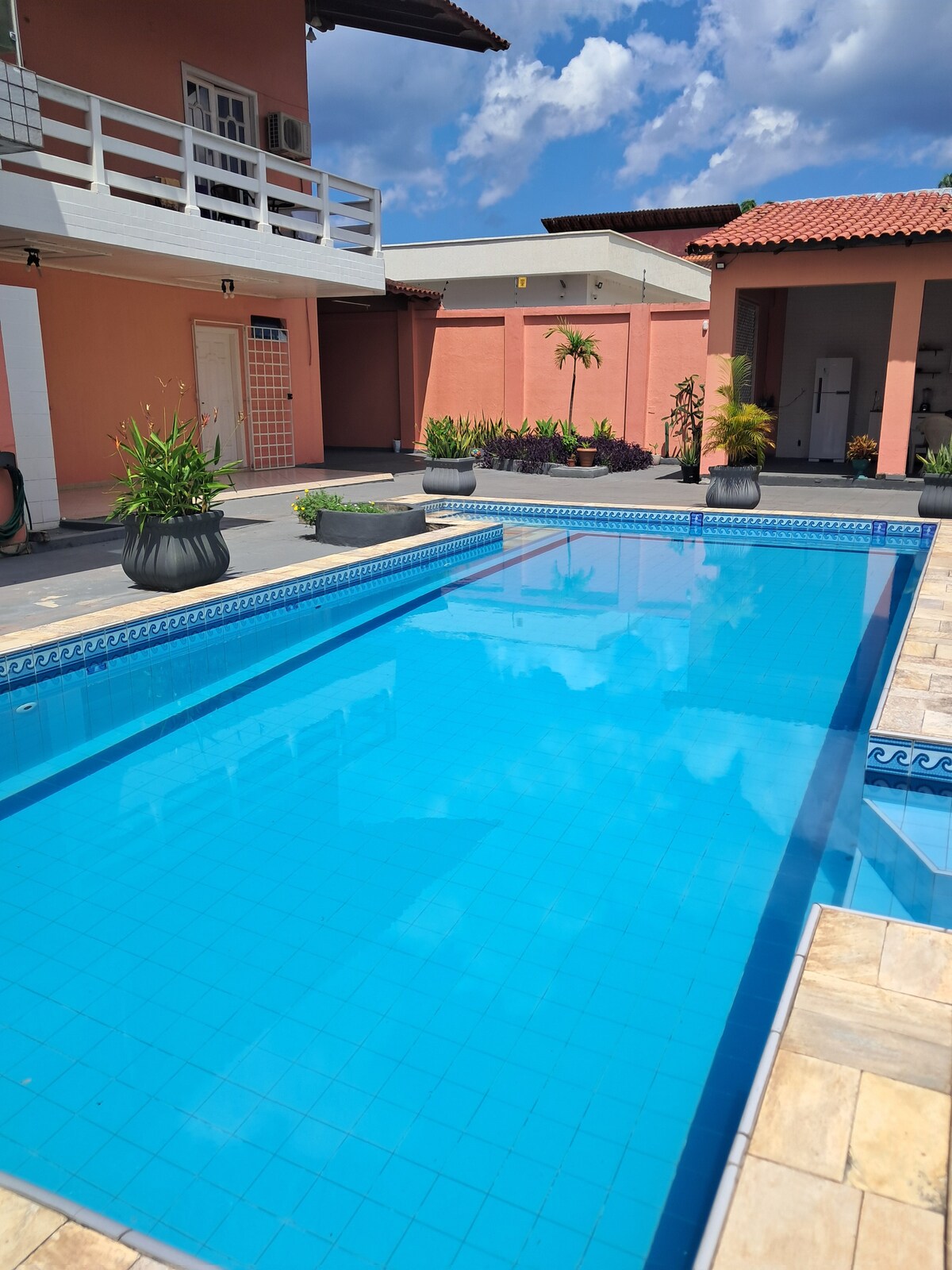 Linda casa dúplex com capacidade para até 12 hóspedes. (IMPORTANTE Informar a quantidade exata de hóspedes e pets). Mobiliada e localizada em condomínio fechado com toda infraestrutura de laser e segurança. 3 quartos (2 suítes), Wi-Fi, TV, Netflix, Amazon Prime e Claro-video. Cozinha completa! Espaçosa e confortável, possui uma excelente área privativa com piscina particular e churrasqueira. À 20 minutos do centro da capital e principais regiões da cidade. Desfrute!