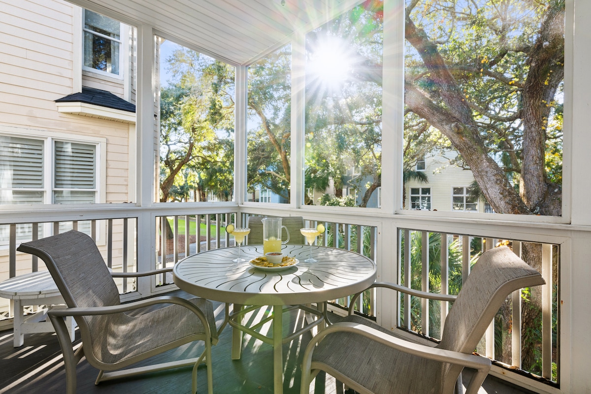 Ovaj ažurirani smještaj je prostran, ima zasebne stambene prostore i udobno spava 10 osoba. Glavna kuća ima 2br / 2 kupatila i ima povezan 1br stan s vlastitom dnevnom sobom, kupatilom i čajnom kuhinjom. Savršeno za porodice koje žele dodatni prostor za svekrve ili tinejdžere da se rašire! Privatno stražnje dvorište s terasom, roštiljem, kaminom i vanjskim sjedalima za roštiljanje. Odlična lokacija na IOP-u, 3 bloka od plaže i pola milje od trgovine i restorana. Dozvola za ostrvo Palms #P-00316.