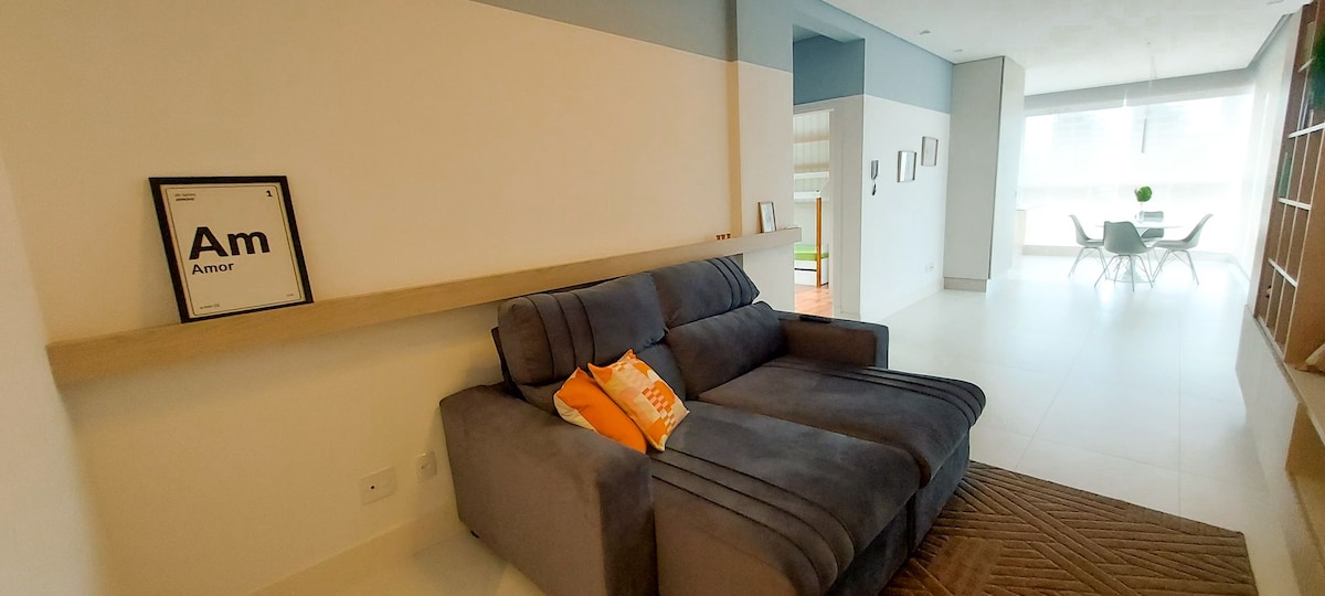 Incredible apartment in Balneário Camboriú, with beautiful views of the entire beachfront. Space with a suite and two bedrooms with private bathroom, large living room, equipped kitchen and balcony facing the sea. Living room and bedrooms recently renovated and air conditioned, high quality mattresses, new furniture and fixtures. Three private and covered parking spaces. We provide bed linen for all beds and one bath towel per guest.