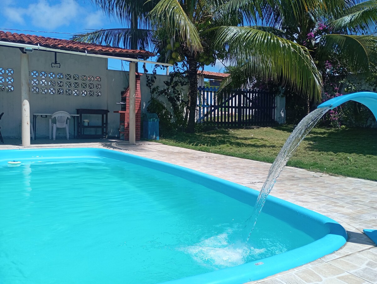 Kuća s bazenom u Itamaracá no Pilar (Rua Senador Nilo Coelho, 136) oko 1 km od Praça do Pilar prema Jaguaribeu. Uđite lijevo prije skladišta Saraiva. Casa terreo + primeiro šetnja. Naša kuća ima 3 spavaće sobe i 3 kupatila (4 kreveta za jednu osobu, 4 madraca i 1 bračni krevet) 1 Smart TV 24', Wi-Fi, 4 ventilatora, roštilj i potpuno osnovnu kuhinju (lonci, blender, posuđe, čaše i pribor za jelo) za 3 automobila. Dubina bazena 8x4 od 1 m do 1,5 m
