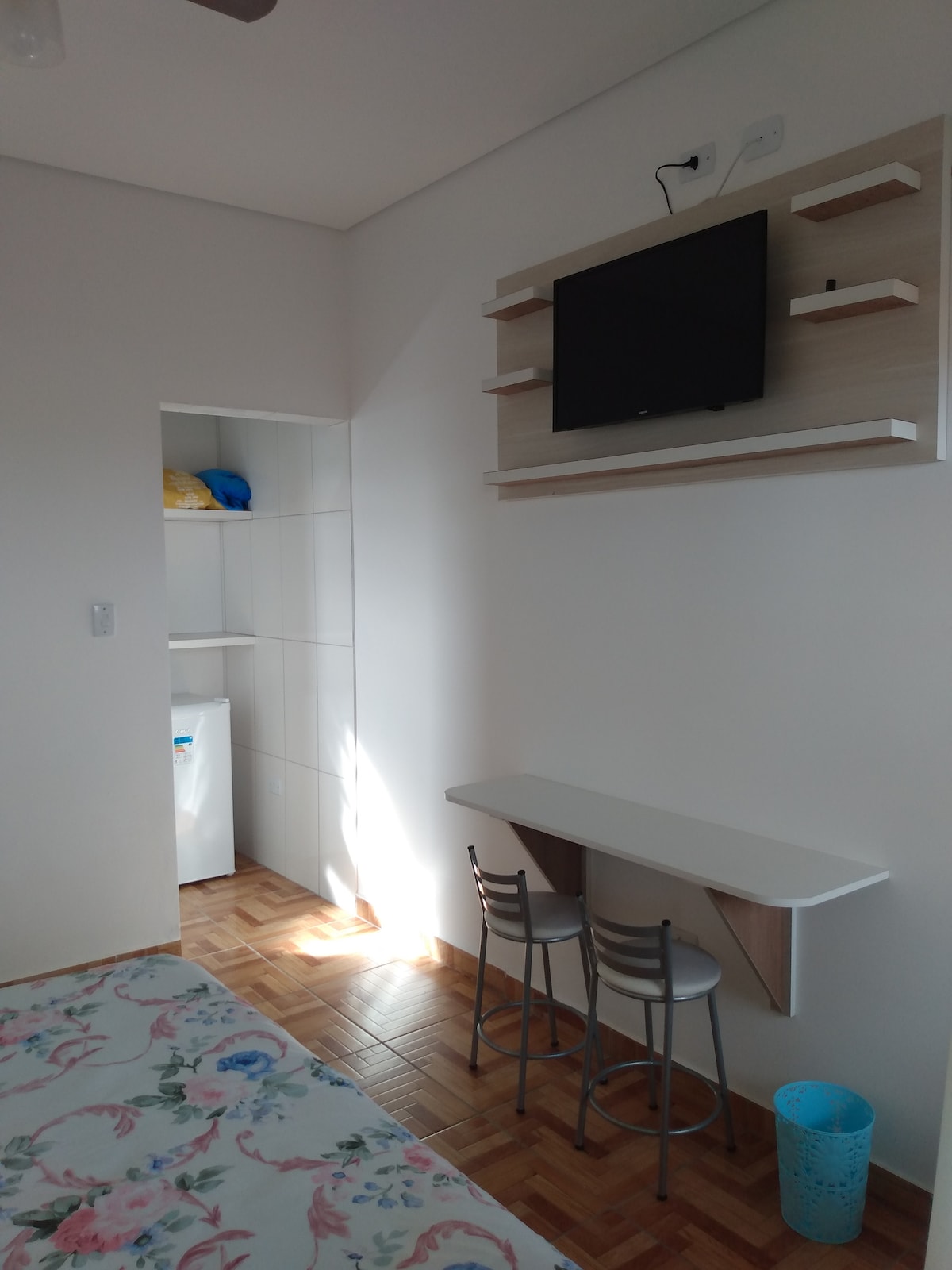 🏡 CARACTERÍSTICAS DA KITNET: 🏡 ☕ COZINHA INTEGRADA com geladeira, fogão, tostex e utensílios essenciais (pratos, copos, panelas...). 🚿 BANHEIRO PRIVATIVO 🛏️ CAMA DE CASAL. 🌬️VENTILADOR DE TETO. ⚠️ INFORMAÇÕES GERAIS: ⏰ Check-in às 14h00 e Check-out às 12h00. 🛏️ Roupas de cama e toalhas fornecidas (uso interno). 🧹 Produtos de limpeza disponíveis. 🚙 Estacionamento para 1 carro. 🛜 Wi-Fi disponível (sem TV). 🥩 Área de churrasco compartilhada.
