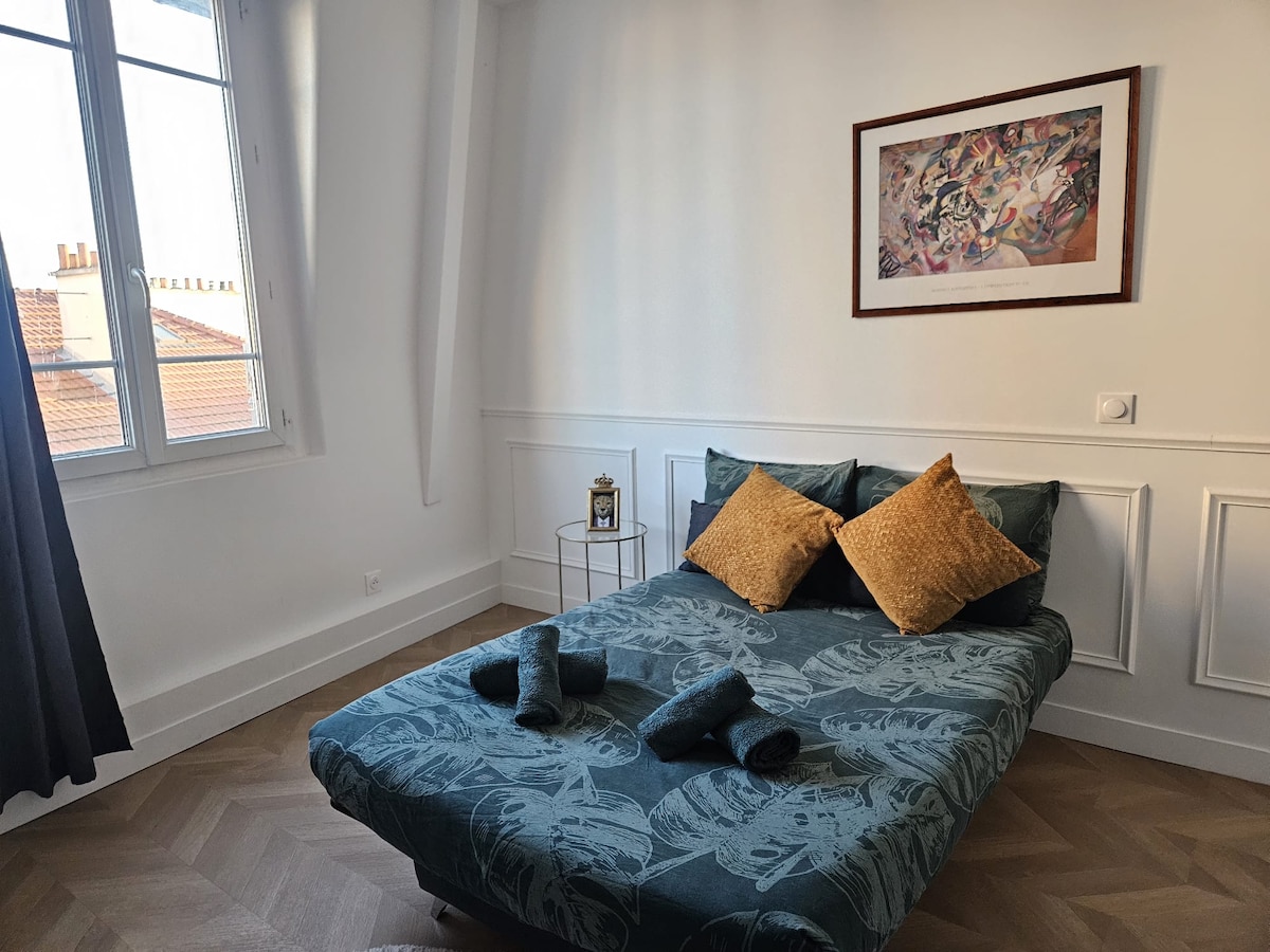 Otkrijte ovaj svijetli studio, idealan za parove, prijatelje ili male porodice. Opustite se u udobnom dnevnom boravku s kaučem na razvlačenje ili kuhajte u potpuno opremljenoj kuhinji. Spavajte pod zvijezdama u bračnom krevetu na mezaninu. Kupatilo ima svježe peškire i toaletne potrepštine, a klima uređaj vam pruža udobnost tokom cijele godine. Samo 7 minuta od metroa (linija 7), brzo ćete stići do Châteleta, Louvrea i Opere, što je savršena baza za vaš pariški odmor.