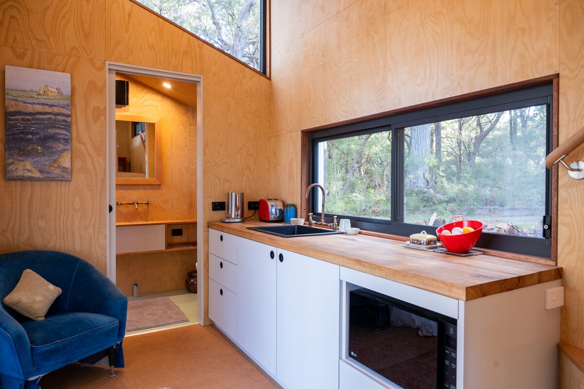 Ovaj samostojeći i samostalni bungalov nalazi se duž našeg dvorišta s odvojenim prilazom i ulazom. Studio uključuje udoban bračni krevet, kamin, kupatilo, čajnu kuhinju, vanjsku terasu i roštilj. Nalazimo se u području nacionalnog parka sa samo stazama i vodopadima u blizini, područje je mirno, što ga čini mirnim odmorom od grada i prirodom. Dođite pripremljeni s hranom ili grickalicama jer je najbliži grad Yarram, udaljen 20 minuta. Pratite nas @wild_Falls