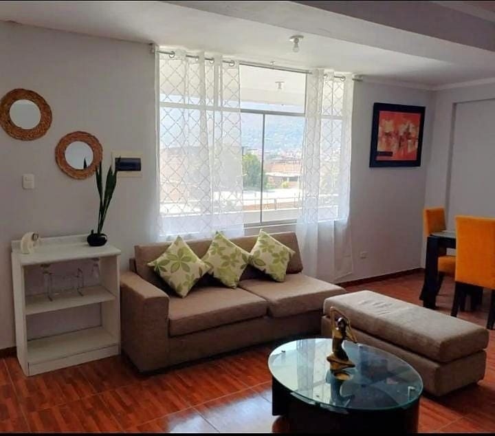 Disfruta tu estadía en este departamento acogedor, confortable, completamente iluminado y con una hermosa vista a la ciudad y valles de Jaén. Se encuentra ubicado a 5 minutos de la plaza de armas, bancos, restaurantes y cafeterías. ¡TE ESPERAMOS!