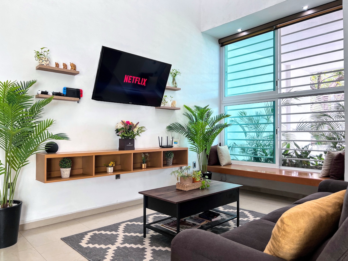 Udoban i moderan minimalistički stil mini potkrovlja u vrlo ekskluzivnom području plaže Manzanillo, u neposrednoj blizini plaže La Audiencia, koja se smatra najboljom i najsigurnijom plažom u Manzanillu, certificiranom kao „Playa Limpia” od strane SEMARNAT arhitekture i atmosfere, s bazenom u podnožju, okruženom planinskom prirodom s jedne strane i morem s druge strane, povjetarcem i svježim zrakom. Kako bismo bili spokojni, u svakoj rezervaciji primjenjujemo vrlo stroge standarde dezinfekcije i higijene.