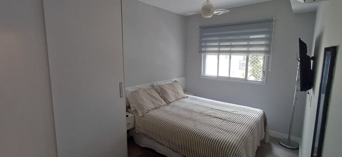 Miran, jednostavan i udoban smještaj, 1 spavaća soba s bračnim krevetom i pametnim TV-om i ventilatorom, dnevni boravak s kaučem na razvlačenje, spavaća soba 2 za jednu osobu s bračnim krevetom, kuhinja opremljena za kuhanje, 8 minuta od stadiona Morumbi, 5 minuta vožnje do bolnice Albert Einstein, pored metroa São Paulo Morumbi - Žuta linija, autobuska stanica, tržnica, apoteka i banke u blizini ulice stana na uglu s Avenidom Giovanni Gronchi.