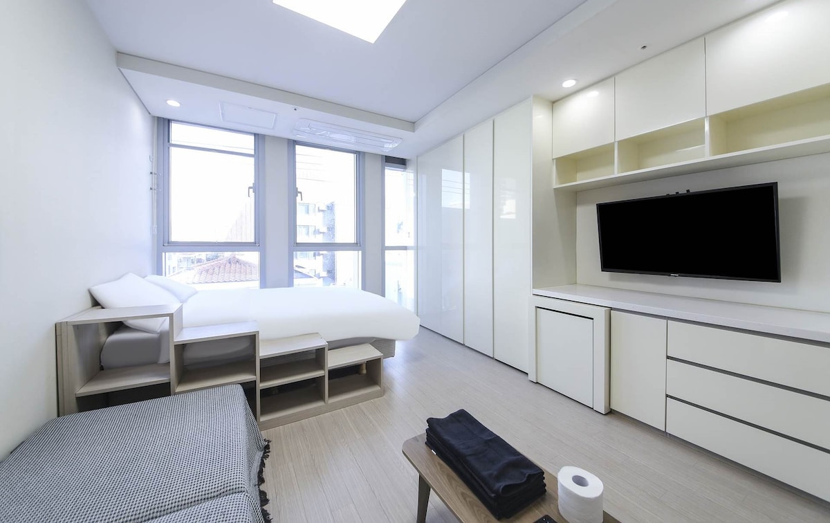Jeju Rae House se nalazi u centru Jejua, tako da ima dobar pristup aerodromu, a vrlo je pogodno koristiti restorane, kafiće i prodavnice u blizini. Radili smo na modernom i urednom enterijeru kako biste se osjećali kao kod kuće, a pružamo i dobru posteljinu i sadržaje za dovoljan odmor kako bismo smanjili umor vašeg putovanja. Uvijek ćemo dati sve od sebe da stvorimo dragocjene uspomene na putovanju na ostrvo Jeju s prijateljima, porodicom i ljubavnicima. ▪¥ Lokacija Residence Itas 3, 88 Shingwang-ro, Jeju-si, Jeju-do ▪¥ Parking Besplatno korištenje podzemnog parkinga (uključen je mehanički parking) ▪¥ Sadržaji i potrepštine TV, frižider, mašina za pranje veša, mikrovalna pećnica, električno kuhalo za vodu, pribor za kuhanje, bide, peškir, šampon, regenerator, gel za tuširanje, pranje ruku, deterdžent za pranje veša, omekšivač tkanine itd. (Nema ličnih stvari kao što su četkica za zube, pasta za zube itd.) ▪¥ Potvrda o registraciji firme Vrsta prodaje: Smještajna firma (dnevni boravak)