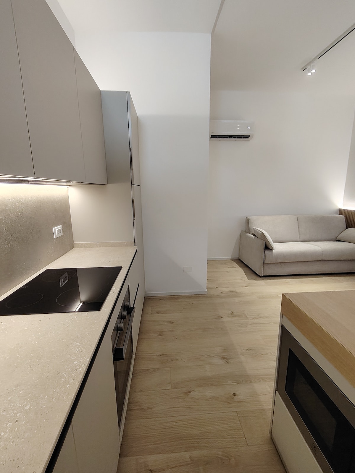 Studio na obali u samom centru, idealan za parove ili samce. Ima mjesto na plaži sa suncobranom i dvije ležaljke na odličnoj lokaciji i privatni parking ispred stana uključen bez dodatnih troškova (za turiste bi parking koštao 18 eura/dan, a suncobran sa ležaljkama ove godine bi koštao bogatstvo, ako ih možete pronaći). 2 sklopiva bicikla dostupna u stanu, indukcijska ploča za kuhanje, 55-inčni TV, Wi-Fi, američki frižider s filtriranom vodom i ledom
