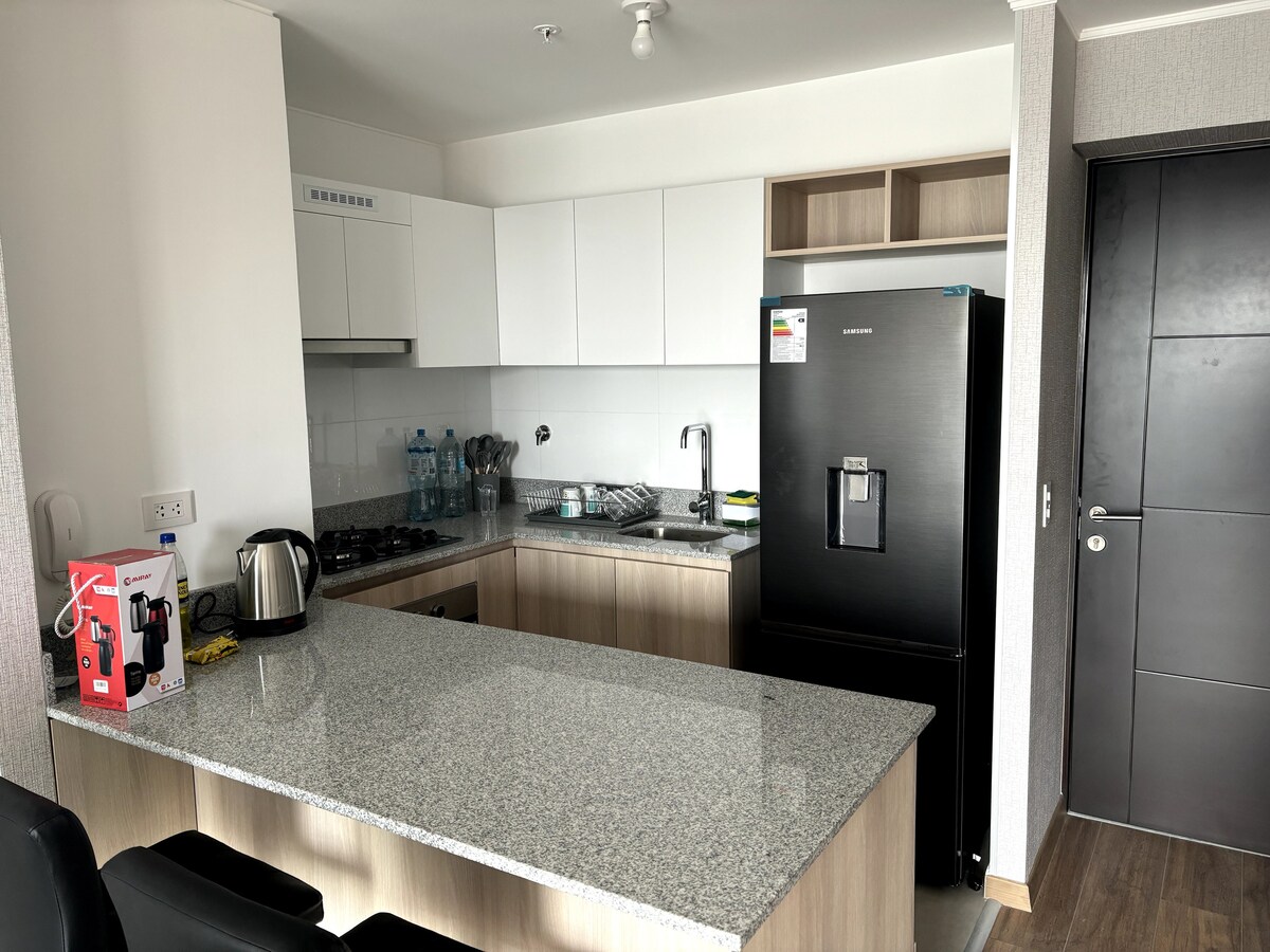 Departamento de estreno en Jesús María, acogedor, moderno, excelente ubicación, a pocos minutos de universidades, clínicas y CC Real Plaza Salaverry. Perfecto para estadías relajantes, de estudio, trabajo o turismo. Totalmente equipado, 2 Habs (cama Queen y 1½ plza), 1 baño, 2 TVs (sala y hab principal), lavadora, internet alta velocidad, YouTube, Netflix, Amazon, ingreso automatizado. Seguridad 24/7 y áreas comunes del edificio: piscina, coworking y gimnasio (previa reserva y disponibilidad).