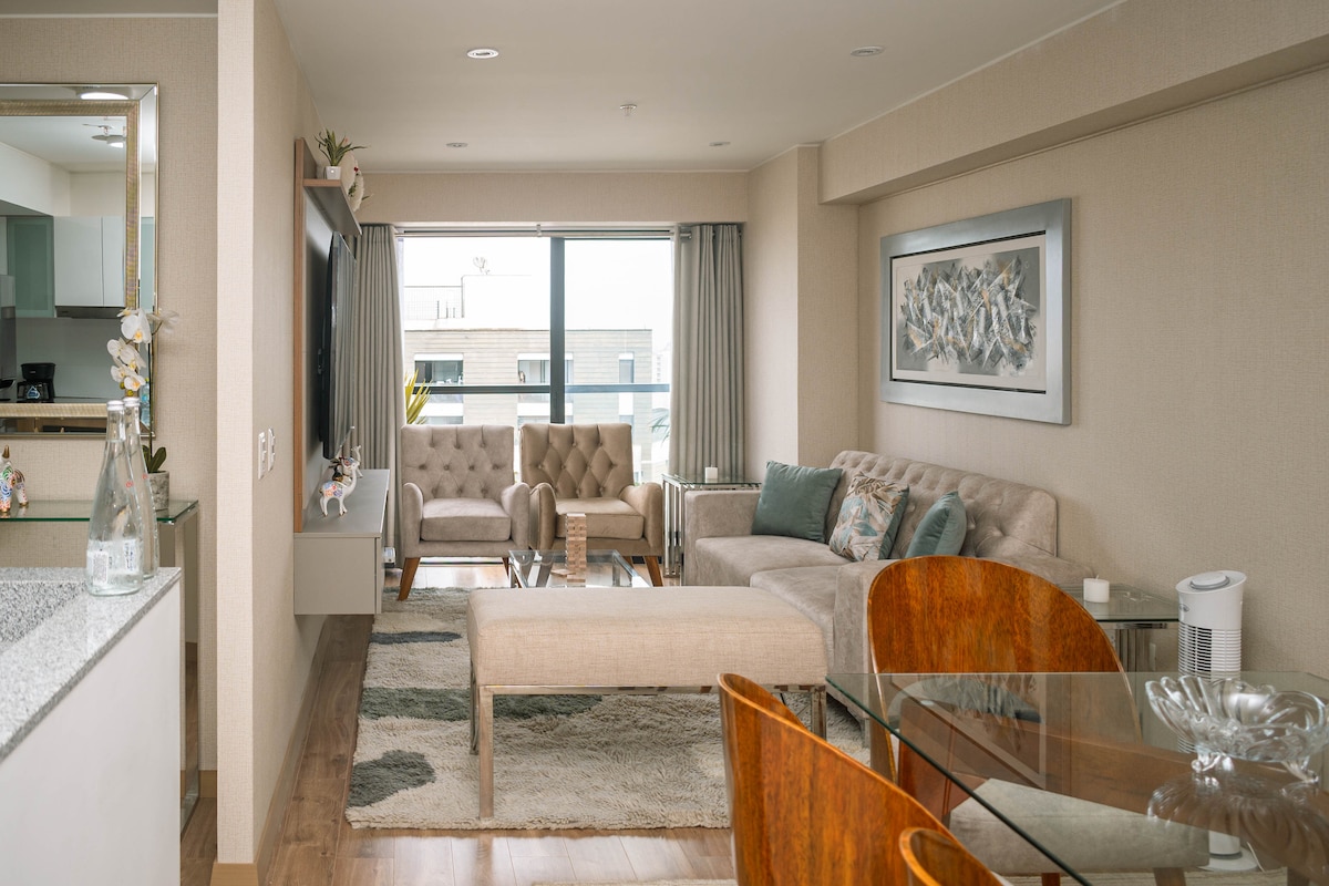 Predivan stan na Av. Salaverry u blizini San Isidra, Real Plaze, univerziteta, klinika i ambasada. Jednostavan pristup historijskom centru, Campo de Marte, Magic Water Parku, Nacionalnom stadionu i Mirafloresu. Uključuje dnevni boravak s trpezarijom, kupatilo za goste, kuhinju, spavaću sobu sa zasebnom kupaonicom, vešeraj i balkon. Potpuno opremljen, Wi-Fi (400 Mbps), Smart TV u dnevnom boravku i spavaćoj sobi. Teretana i bazen u zgradi. Savršeno za posao ili odmor, kao par ili porodica; osjećatćete se kao kod kuće.