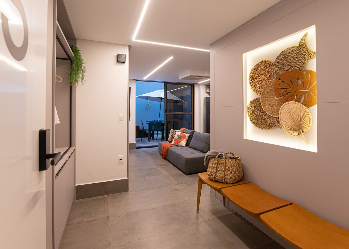 Stan visokog standarda u Tambaúu, idealan za odmor ili rad, udoban i dobro opremljen prostor. Imamo bračni krevet i kauč na razvlačenje, potpuno opremljenu kuhinju, pročišćivač vode, klima-uređaj od 18000 btu, pametni TV, posteljinu za krevet i kupatilo, brzi privatni internet, natkriveno garažno mjesto, besplatno i rotirajuće. Prekinuti bazen ponedjeljkom.