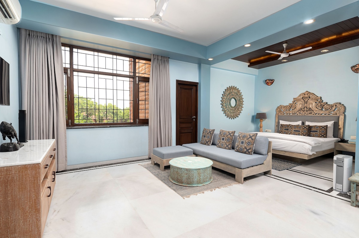 Prekrasna Deluxe soba u vili smještena u veličanstvenom podnožju palače Umaid Bhawan. Smještena u srcu Jodhpura, kuća je smještena u mirnom i zelenom okruženju. Sa zadivljujućim pogledom na Umaid Bhawan, naš prekrasni vrt na terasi je savršeno mjesto za opuštanje. Naše prostrane sobe za goste neprestano tkaju moderan luksuz i Jodhpur chic zajedno - nude doživljaj kao nijedan drugi.