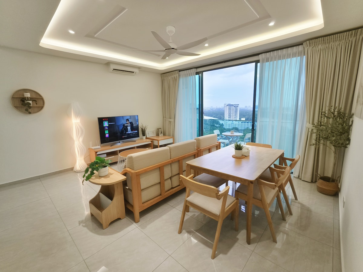 🤗JB House je moderno utočište na visokom spratu s 2 spavaće sobe s detaljima hotelskog kvaliteta, mekom posteljinom, uređenim dekorom i punom kuhinjom. Savršeno za porodice, parove, prijatelje i poslovne putnike, s pristupom bazenu, teretani, sobi za igre i besplatnom parkingom. Nalazimo se nekoliko minuta od Legolanda, Bukit Indaha, Sunway Big Boxa, Medinija i glavnih autoputeva. Zabava, hrana, kupovina i miran odmor, sve je prikladno blizu. Očekujte čist, gostoljubiv prostor, odlične sadržaje, smještaj kreiran s pažnjom, pravi dom daleko od doma s 5🌟