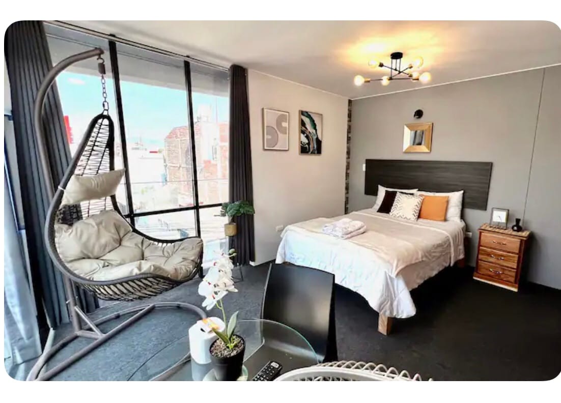 Sobe s velikim krevetom i privatnim kupatilom u hotelu, koje se nalaze na Aveniji Principal de Arequipa. U blizini trgovačkih centara, restorana, banaka i Plaza de Cayma i Yanahuara. Odlično za parove koji traže privatnost, udobnost i jednostavan pristup gradu. Kao dodatak, nudimo i sobe s bračnim krevetom, savršene za porodična putovanja ili grupe koje žele dijeliti boravak na jednom mjestu.