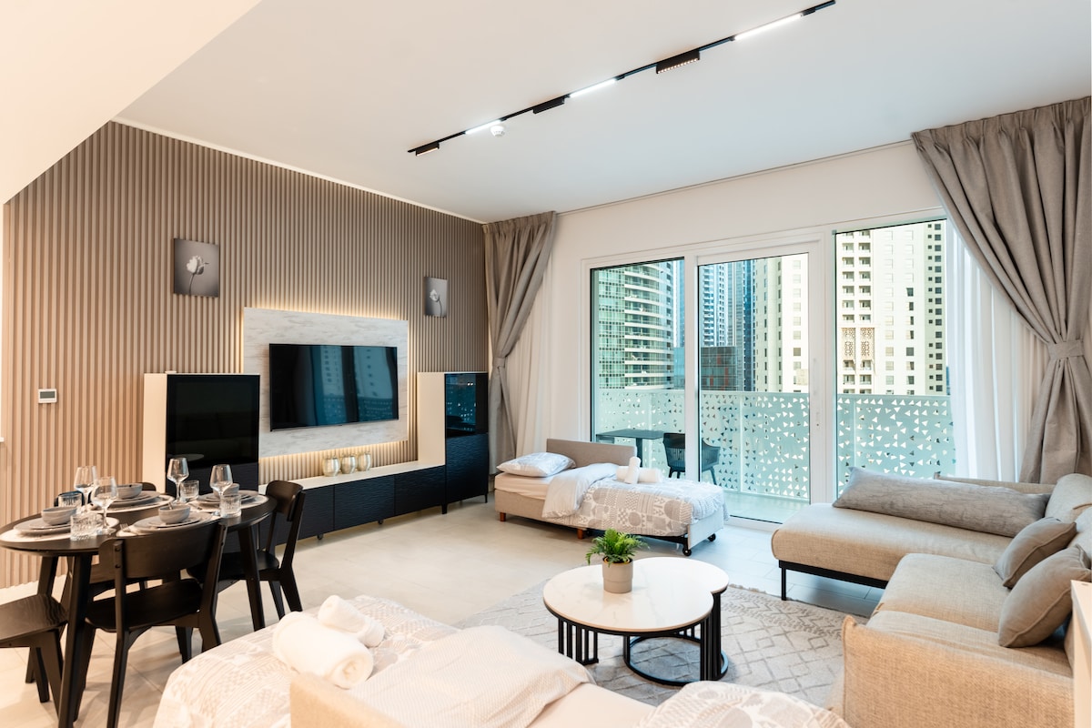 Boho Studio Beachfront Ain |Sea View JBR Walk 1min