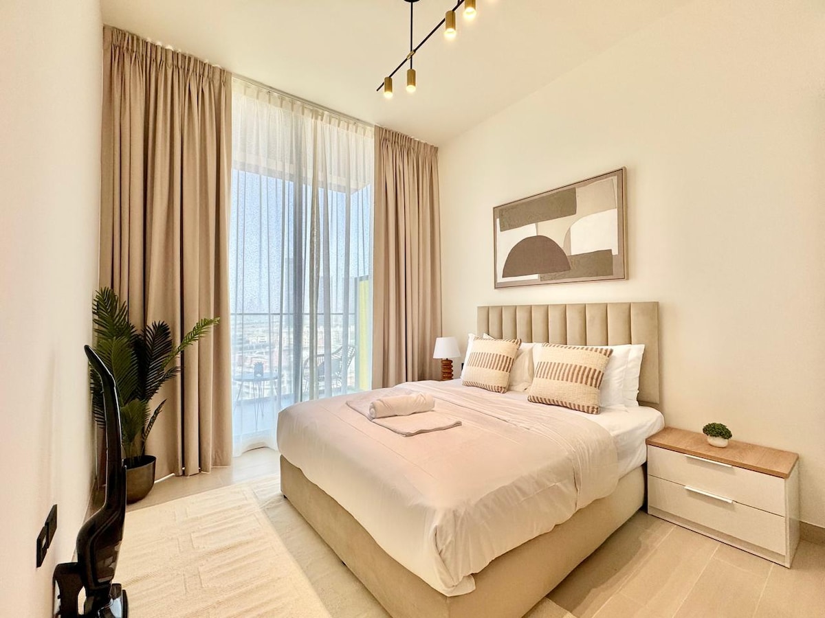 Dobro došli u mirnu stranu Dubaija. Ovaj mirni 1BR u Binghatti Onyxu, JVC pruža vam pogled na horizont, privatni balkon i svu udobnost do koje vam je stalo... - poput brzog Wi-Fi-ja, pametnog TV-a i potpuno opremljene kuhinje. Imate li malu? Prekriveni ste besplatnom opremom za bebe (krevetić, stolica za hranjenje, posuđe za bebe; nema potrebe za pakovanjem). Trgovački centar Circle je kratka šetnja za hranu, kupovinu ili kasnonoćnu užinu. I da, bazen, teretana i parking su uključeni. Pošaljite nam poruku.