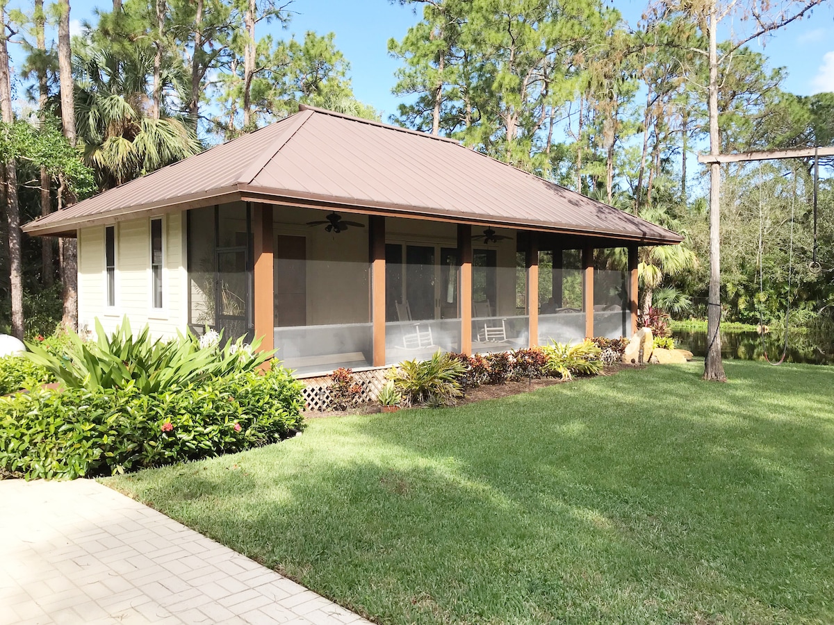 Beautiful, very private and clean Guest House in Jupiter Farms. 1 bedroom 1 bathroom with kitchenette. Screened in wrap around porch. Quiet, very safe neighborhood. Perfect environment to relax and unwind in paradise. Close to town yet away from it all. Blue Ridge Farms 1 minute Lady Jean Ranch 2 minutes White Trail Club, A Flower Farm 9 minutes Rodger Dean Stadium 14 minutes PBI Airport 24 minutes