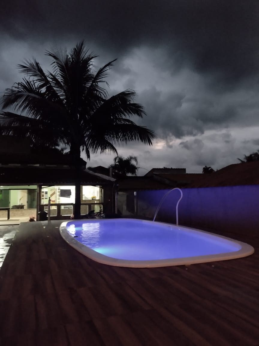 Peruibe com piscina, churrasqueira, frente a praia