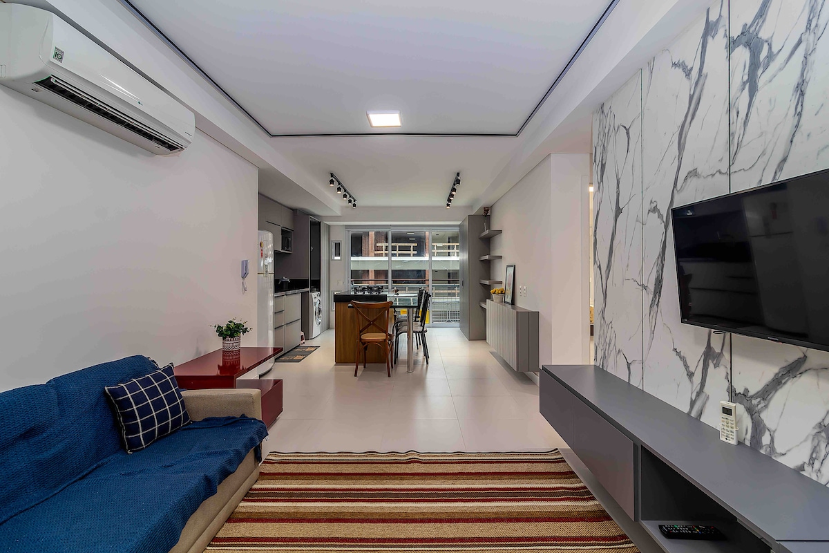 ✨ Vaš luksuzni odmor u Jurerê Internacionalu je spreman da vam poželi dobrodošlicu! Ovaj ekskluzivni stan, s potpuno novim sofisticiranim dekorom, nudi udobnost i eleganciju na jednoj od najpovlaštenijih lokacija u Florianópolisu. Boravite u srcu najšarmantnijeg kvarta u gradu, odmah pored Open Shoppinga, okruženi kafićima, restoranima i biciklističkim stazama. Najbolje od svega, plaža je udaljena samo 10 minuta hoda (800 m) ulicama obrubljenim drvećem, što svaki trenutak čini zaista posebnim.