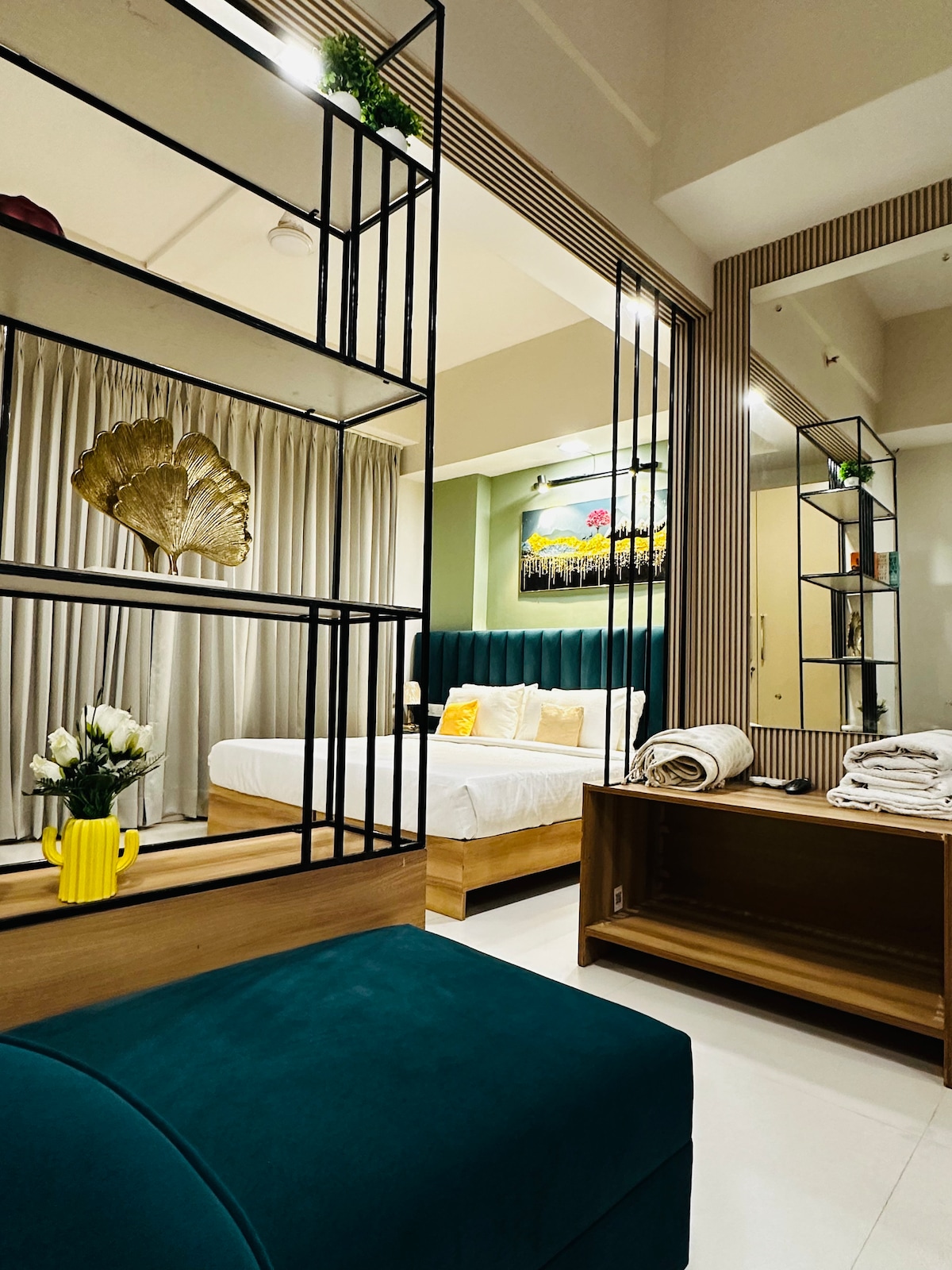 Dobro došli u svoj savršeni odmor u srcu Gurgaona! Ovaj moderni, lijepo dizajnirani studio apartman kombinuje stil, udobnost i praktičnost, što je idealno i za kraće boravke i za duže boravke. Studio ima sve moderne sadržaje: brzi Wi-Fi, pametni TV, klima uređaj, potpuno opremljenu čajnu kuhinju i udoban bračni krevet. Bilo da ste ovdje poslovno ili u slobodno vrijeme, pronaći ćete sve što vam je potrebno za besprijekoran boravak.