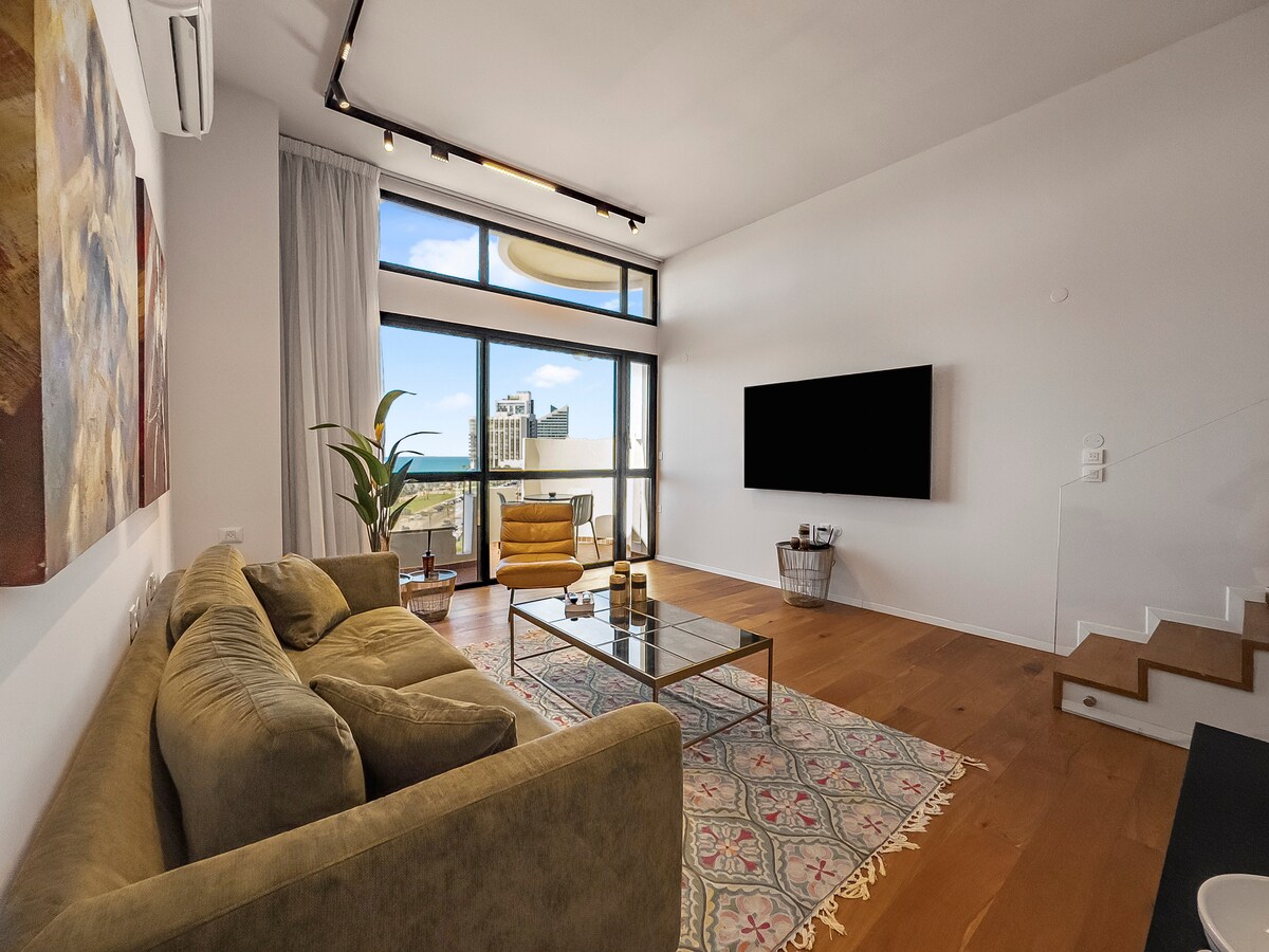 Dobro došli u Sky Loft na plaži, krunski dragulj Herzliya obale. Visoki stropovi dvostruke visine i prozori od poda do stropa preplavljuju prostor svjetlošću i pružaju beskrajne poglede na Mediteran iz svakog ugla. Opustite se u dizajnerski uređenom komforu, pripremajte obroke u potpuno opremljenoj kuhinji i povucite se u glavni apartman na spratu s privatnim kupatilom. Sve unutar prestižne rezidencije s bazenom, osiguranjem 0–24 i samo nekoliko koraka do plaže Accadia, finih restorana, kafića i butika.