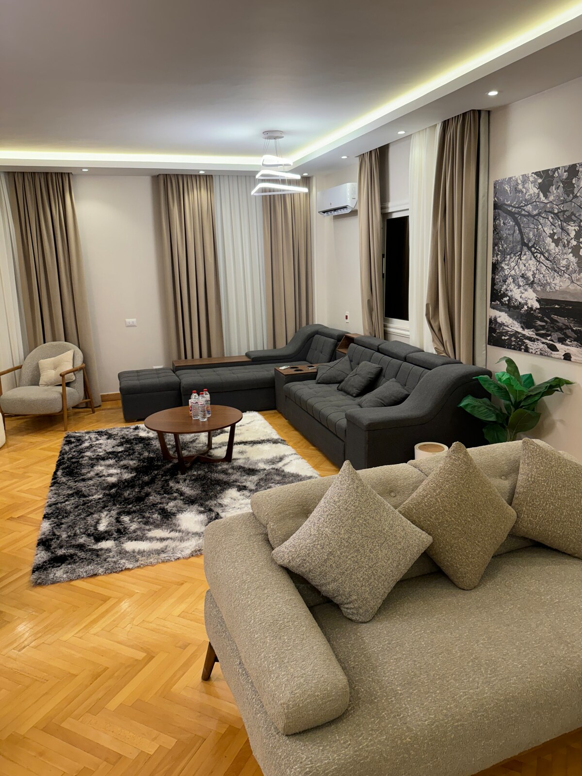 Uživajte u luksuznom životu u odmaralištu gdje bujne zelene šetnje nemaju kraja dok stvarate nezaboravne trenutke opuštanja i uživanja u 3 vrhunska bazena, uključujući bazene za sve uzraste i bazene samo za odrasle, uz blizinu svih gradskih atrakcija gdje se nalaze poznati tržni centri, a udaljeno je 25 minuta od Velikog egipatskog muzeja Uberom! Naš stan se nalazi u srcu jednog od najpoznatijih luksuznih stambenih kompleksa gdje možete lutati ili uživati u ugodnoj šetnji u bilo kojem trenutku!