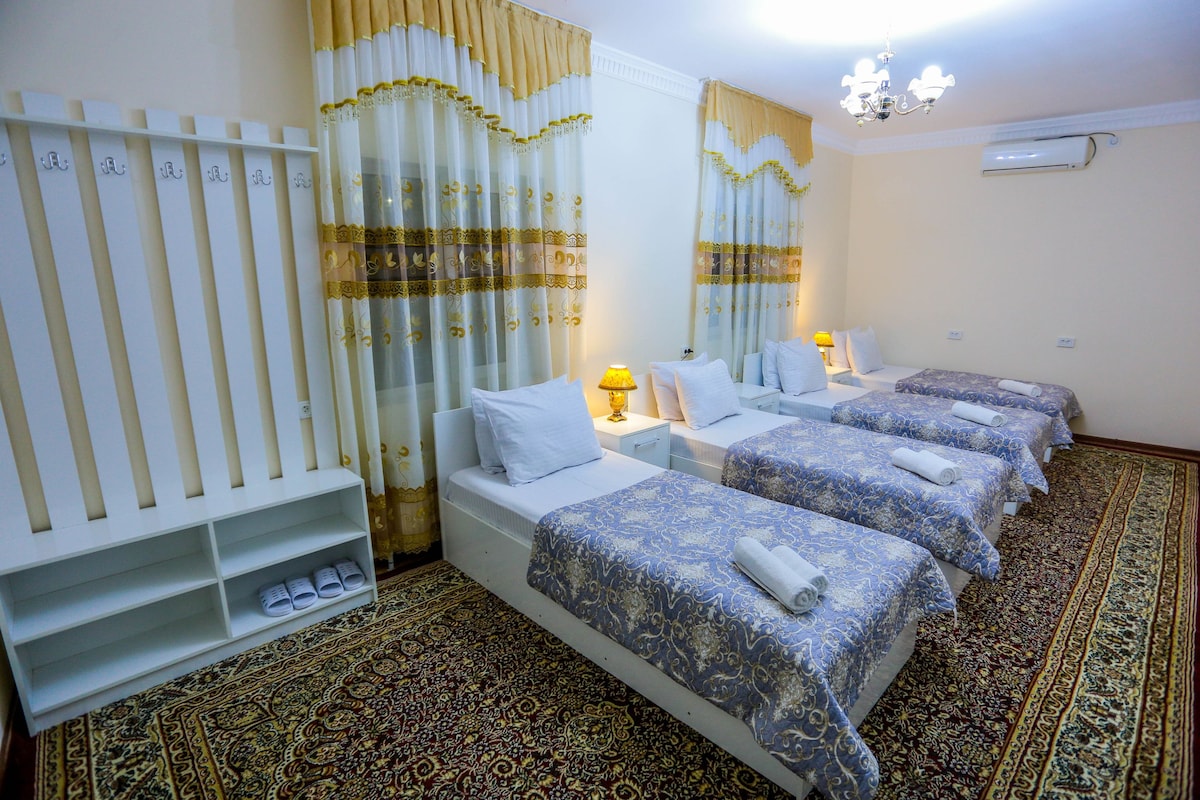 Smješteni u srcu Buhare, udaljeni ste samo 5 minuta od historijskog razgledanja grada. Opustite se s cijelom porodicom i prijateljima u ovom mirnom i sigurnom smještaju.