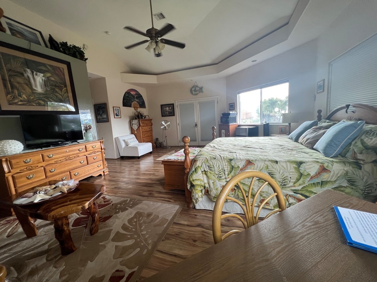Mali prostor s velikim udarcem i havajskom atmosferom. Ovaj udoban „bungalov” je savršen za par ili putnike koji putuju sami. Uživajte u ručno izrezbarenim vratima od mahagonija i novouređenom tuš kabini s odličnim barom za tuširanje. Ovaj prostor je udaljen samo tri bloka od okeana i 10 minuta vožnje automobilom do starog grada Kone. Vaš smještaj uključuje: Bračni krevet (160x200), klima-uređaj Brzi Wi-Fi, kablovska/pametna televizija. Pogledajte naše druge oglase! airbnb.com/h/treetop-kona airbnb.com/h/guestwing-kona airbnb.com/h/hawaiianretreat-kona