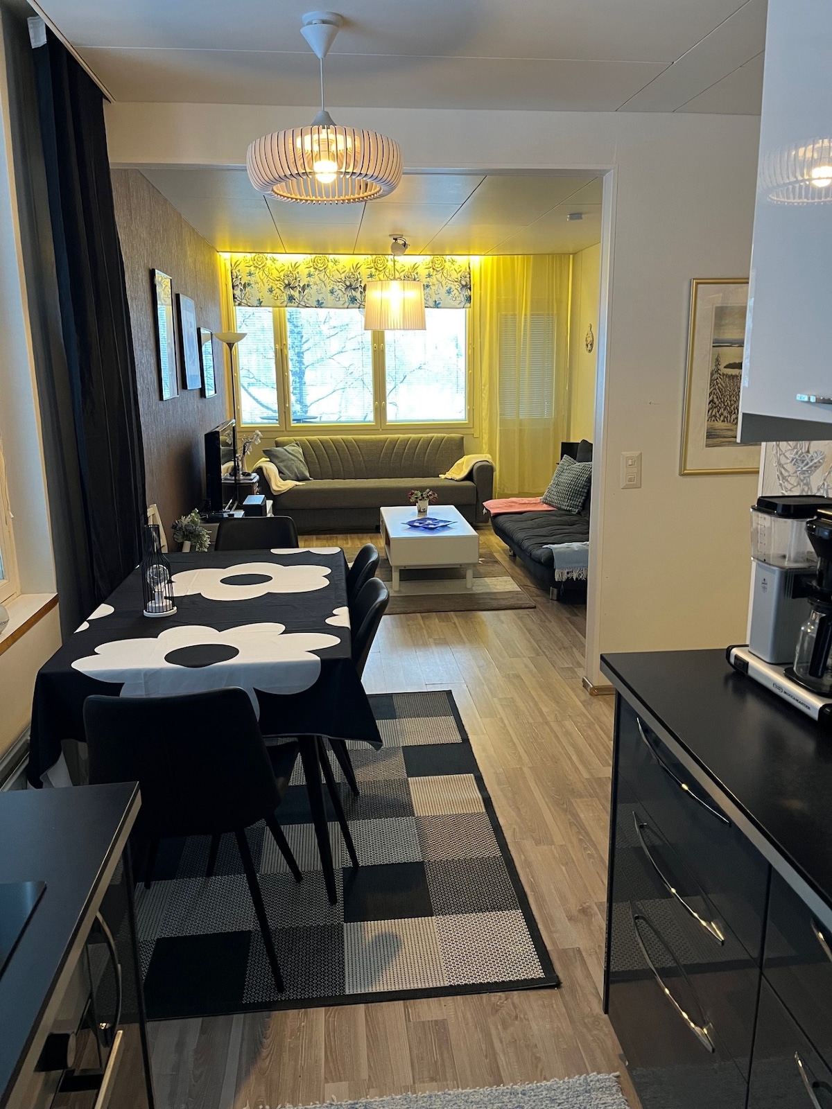 Nauti elämän helppoudesta tässä rauhallisessa, keskeisellä paikalla sijaitsevassa tyylikkäässä kohteessa. Valoisa läpitalon huoneisto sijaitsee aivan Kajaanin kaupungin palveluiden äärellä. Lähimpään kauppaan ja ravintolaan 150m ja paljon ilmaista parkkitilaa asunnon lähellä. Viihtyisää puistoaluetta ja leikkipuistoja lapsille aivan asunnon lähistöllä sekä paikallisia nähtävyyksiä, kuten Kajaanin kirkko ja Linnan rauniot. Asunnosta löytyy kaikki tarvittava myös pidempiaikaiseen majoittumiseen.