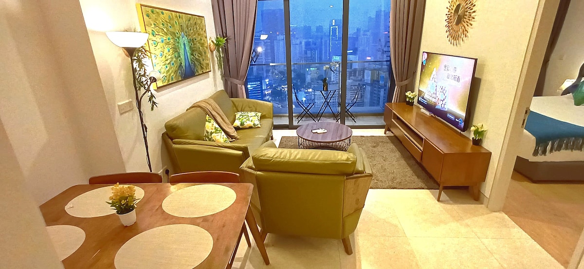 Why stay at The Peacock 1BR Suite at Lucentia Residence -best views of KL -beautifully decorated with a fun spirit -centrally located -near public trans -fast wifi -TVs with Netflix, Apple TV, Prime Video -2 gorgeous pools -family friendly with baby crib & high chair -gym, pool table,BBQ pits, piano -garage parking -recommended for 3 people,max can sleeps 5 -LalaPort Shopping Mall & the WOW entertainment street, grocery, drug store & many restaurants are attached -movie theater GSC
