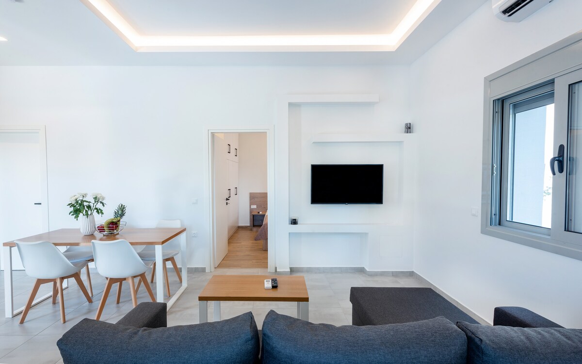 Απολαύστε την απόλυτη χαλάρωση σε αυτό το κομψό και πλήρως εξοπλισμένο στούντιο με μαγευτική πανοραμική θέα στη θάλασσα. Το διαμέρισμα διαθέτει ένα άνετο διπλό κρεβάτι και καναπέ-κρεβάτι, ιδανικό για να φιλοξενήσει έως 3 άτομα. Η ιδιωτική αυλή με σαλόνι εξωτερικού χώρου σας προσκαλεί να απολαύσετε τον καφέ ή το κρασί σας με θέα το απέραντο γαλάζιο. Ιδανικό για ζευγάρια, φίλους ή οικογένειες που αναζητούν πολυτελή διαμονή με άνεση και στυλ, μακριά από τον θόρυβο της πόλης.