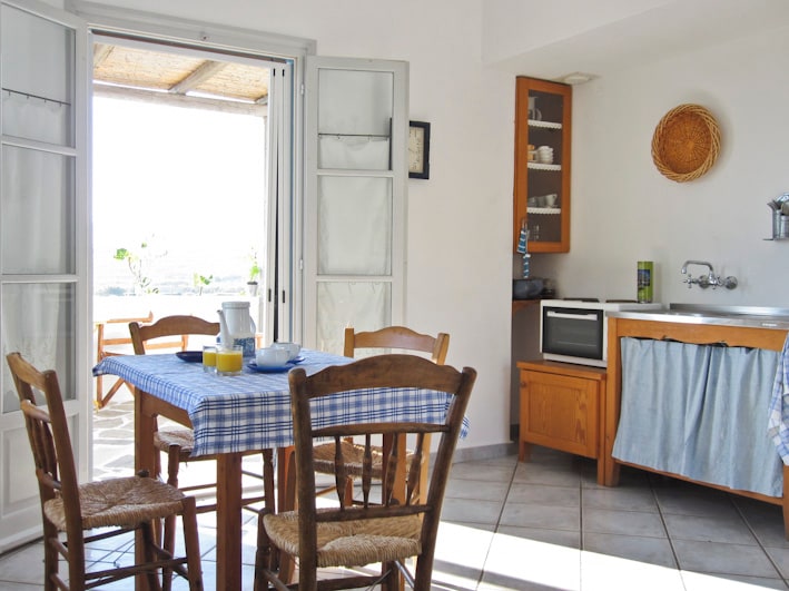 Sueno sunset villa for 2 is located in a nice area which combines beautiful sea-views,it is part of a complex consisting of 5 other apartments,It is 2,3 kilometers from the port of Parikia .The old town, the shops and the night life are 1200 meters away. It is 33 square meters and has a fully equipped kitchen, 1 bedroom, a living room, 1bathroom and veranda with jacuzzi is not heated. You deliver it clean with sheets and towels and there is not a service include during your stay.